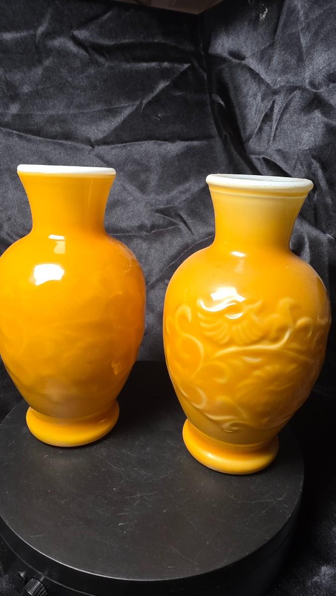 Pair of Vintage Avon “Spring Bouquet” Amber Milk Glass Fragranced Vases – 1981 Collectible Set