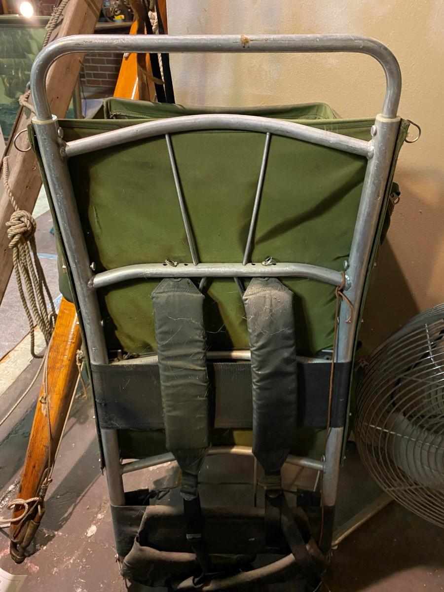 Pair of Vintage Backpacking Packs with Green Fabric and Metal Frame. Circa 1980s. In good condition.