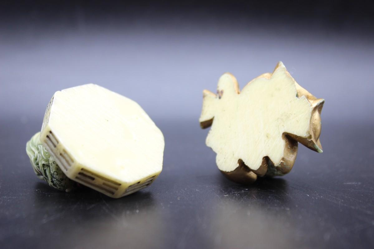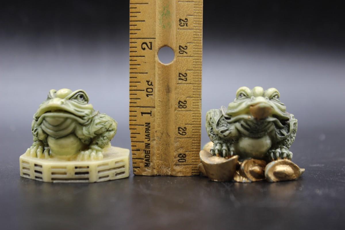 Pair of Vintage Bagua Feng Shui Frog Toad Small Figurines, there are no significant cracks or chips to either pieces and is in good vintage condition. Check pictures for more details and for sizing.
