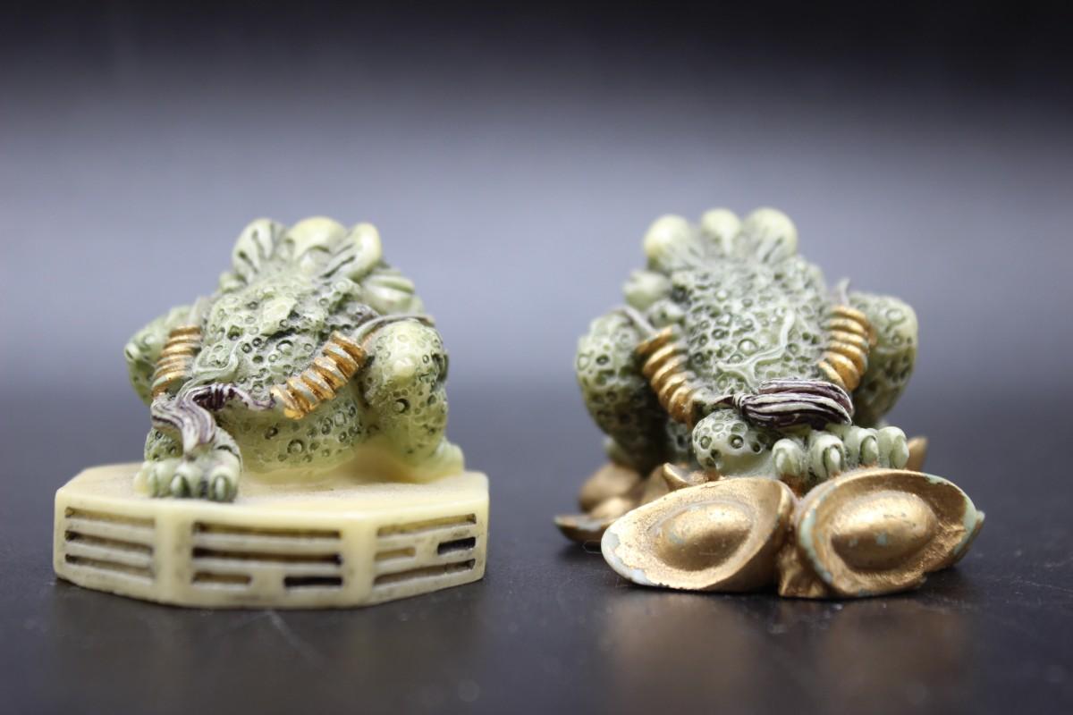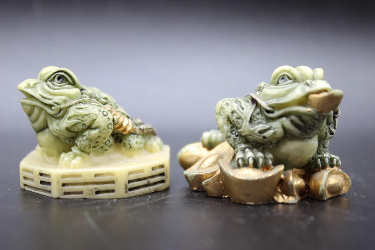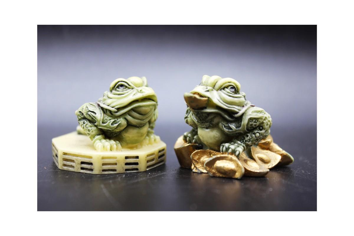 Pair of Vintage Bagua Feng Shui Frog Toad Figurines