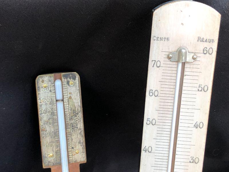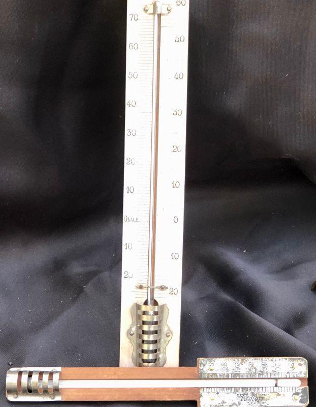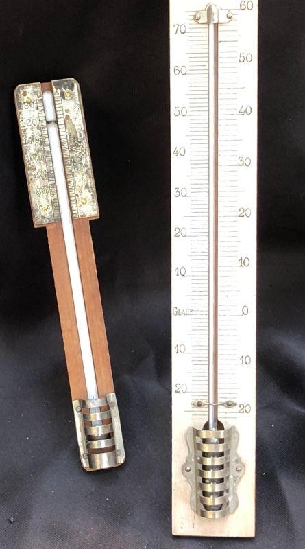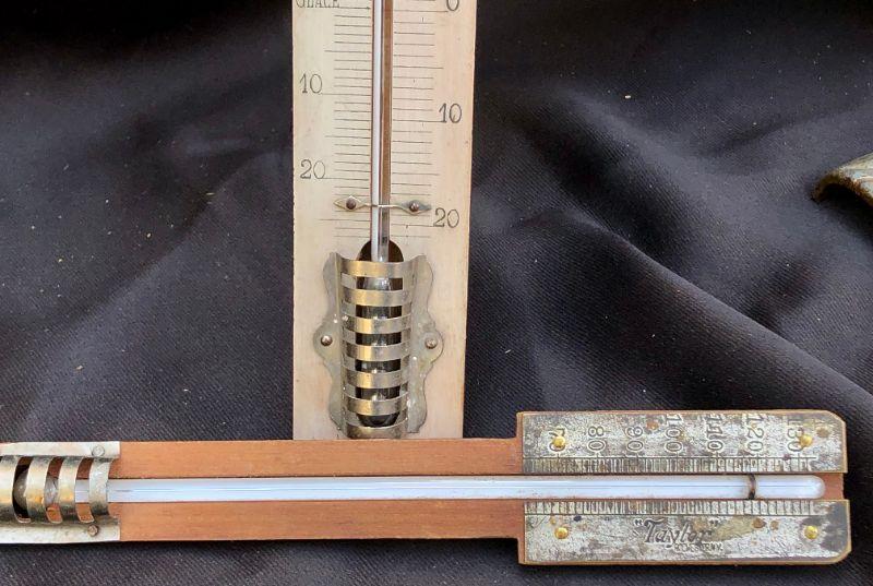 Pair of Vintage French and American Barometers. Taylor, Rochester NY and French Barometer. Top of Of Barometer Reads Cente and Reaub