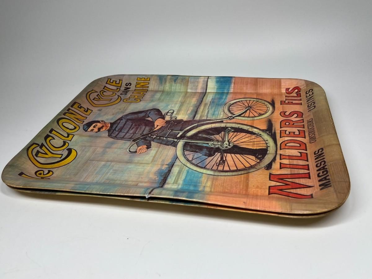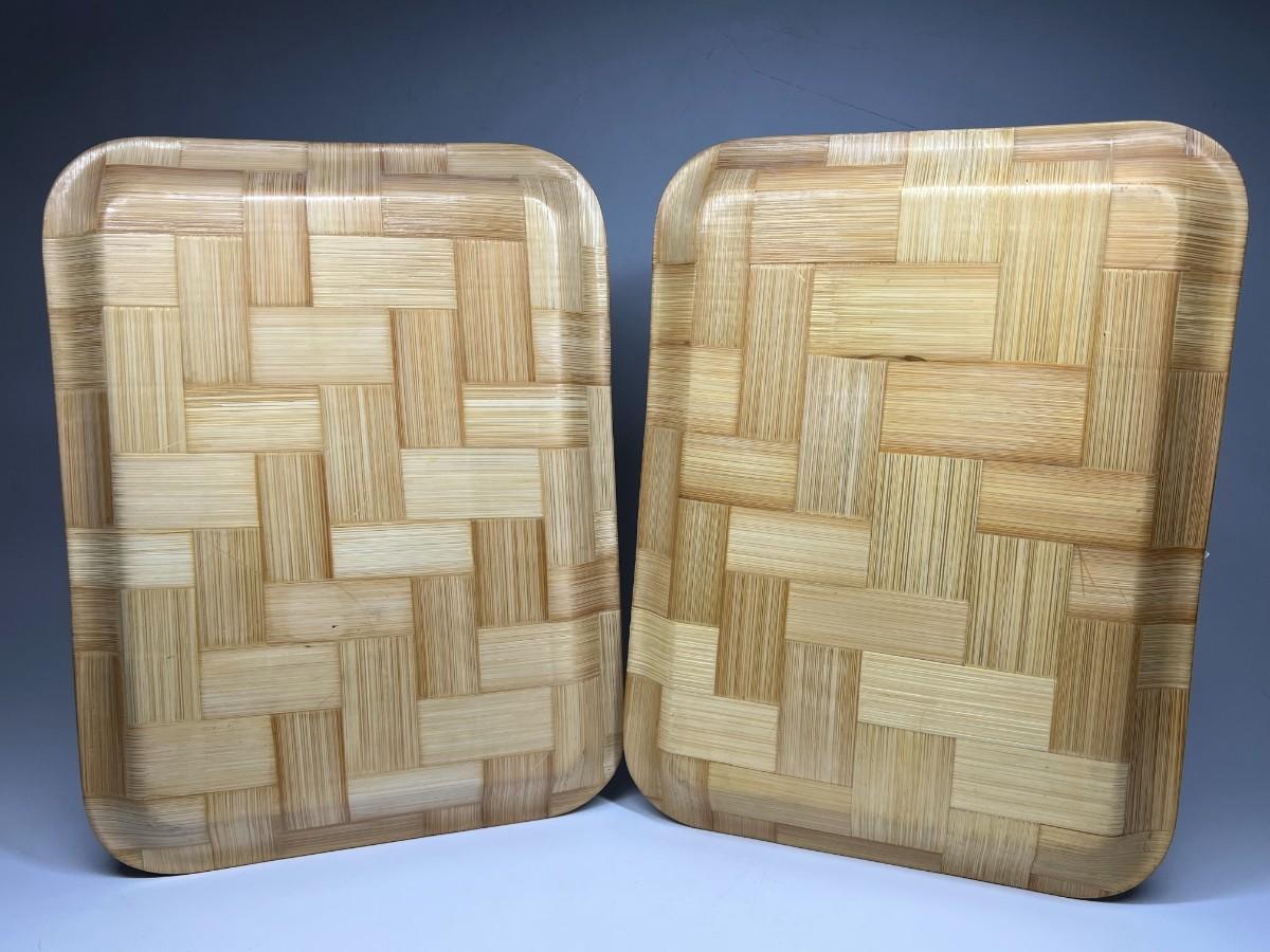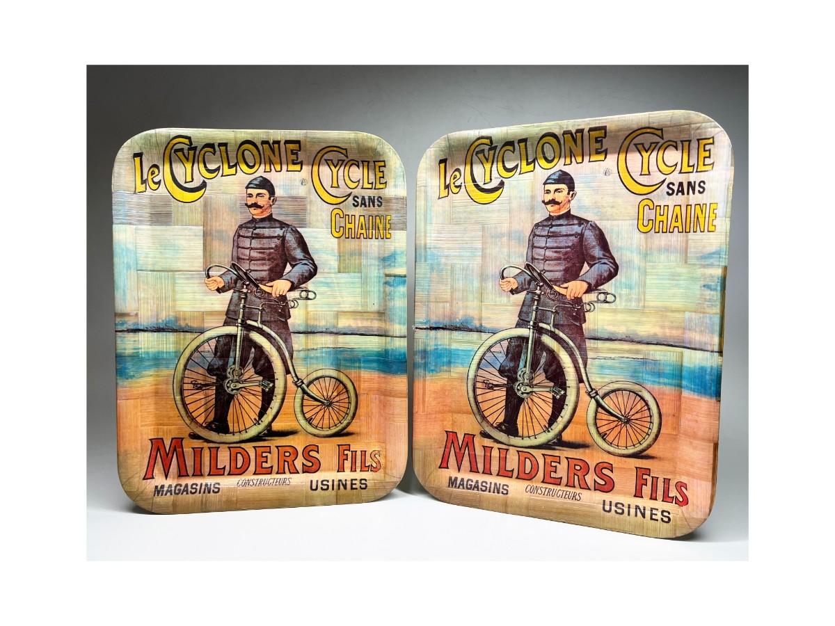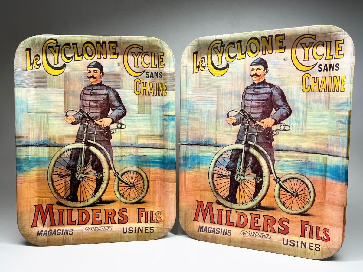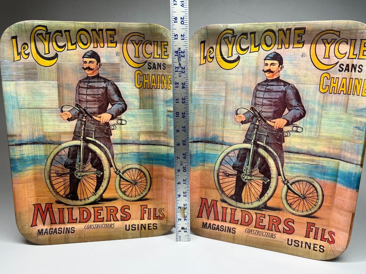 Pair of Vintage Bicycle Decorative Woven Bamboo Tray Wall Hanging Art