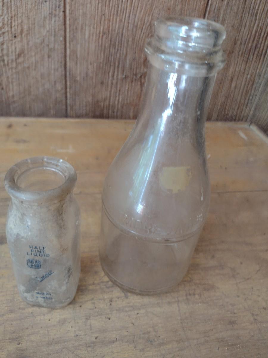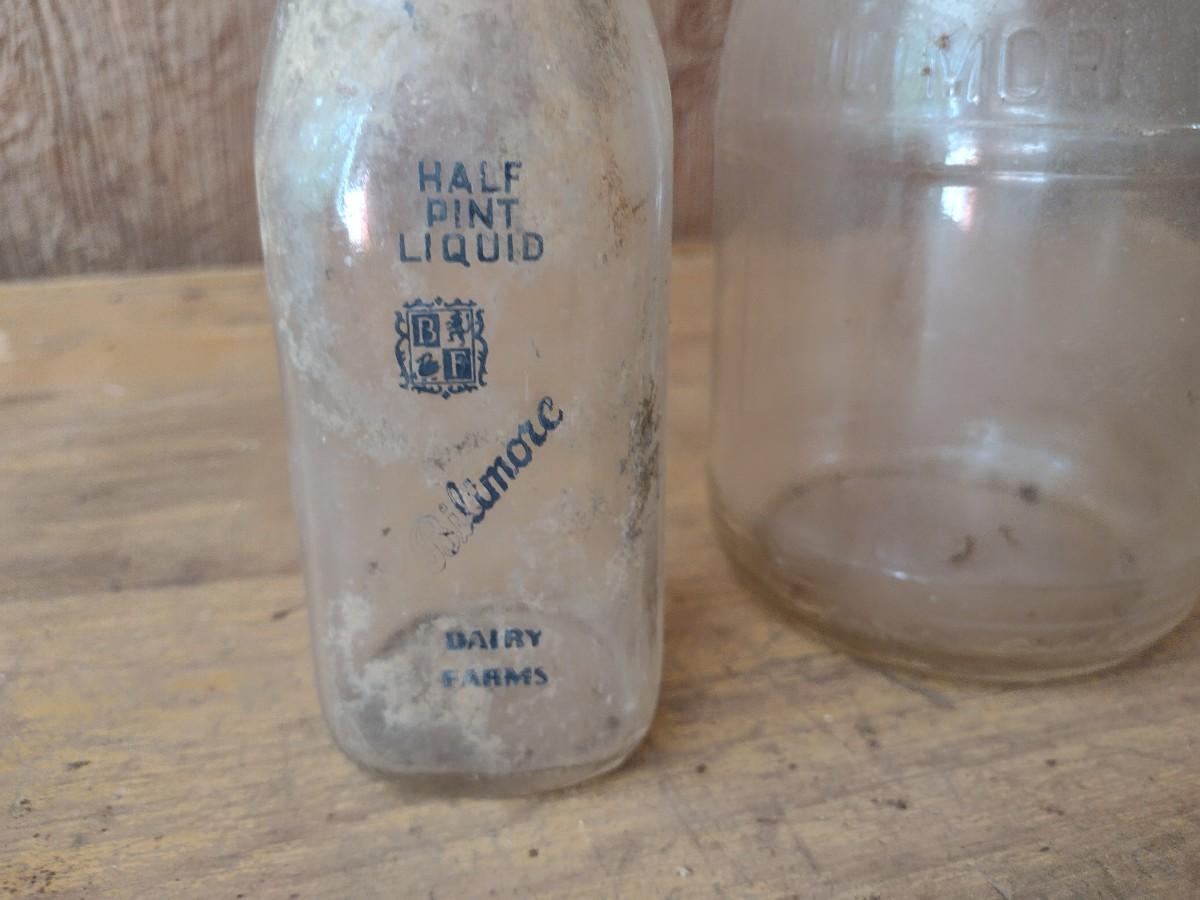 Pair of Vintage Biltmore Dairy Farm Pint and Half Pint Glass Milk Bottles (#34)