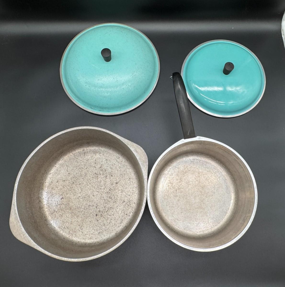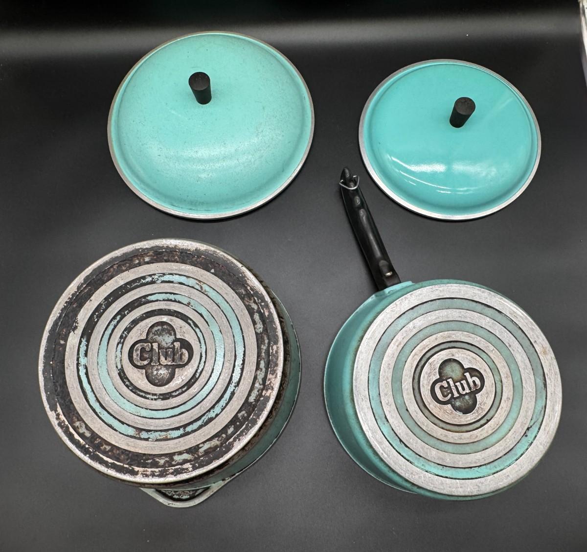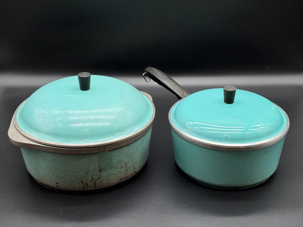 Pair of Vintage Blue Club Pots with Lids