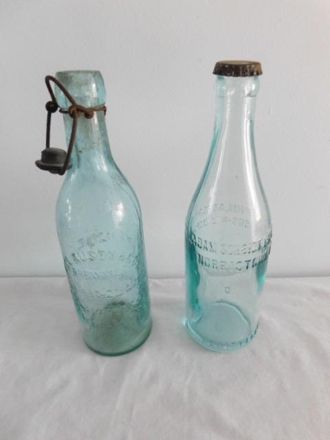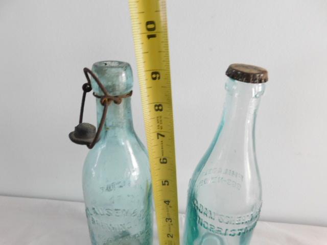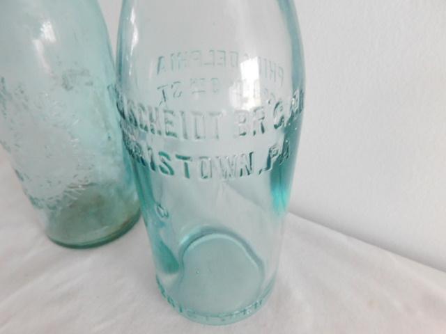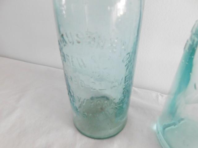 Pair of Vintage Blue Glass Pennsylvania Beverage Bottles