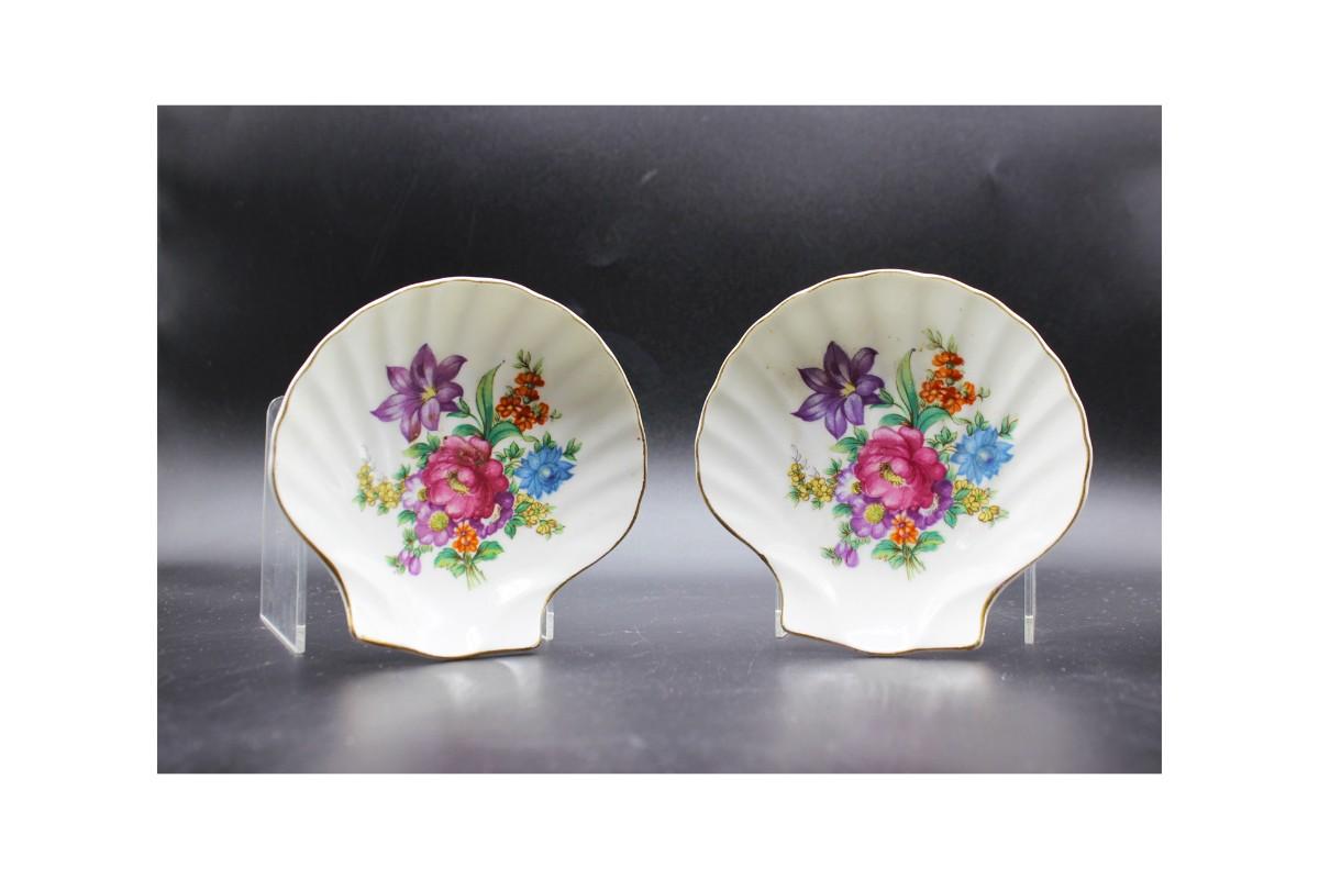 Pair of Vintage Bone China Scallop Seashell Flower Design Trinket Dishes