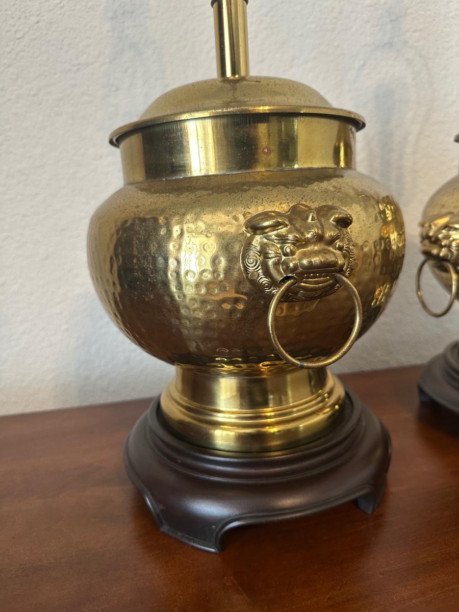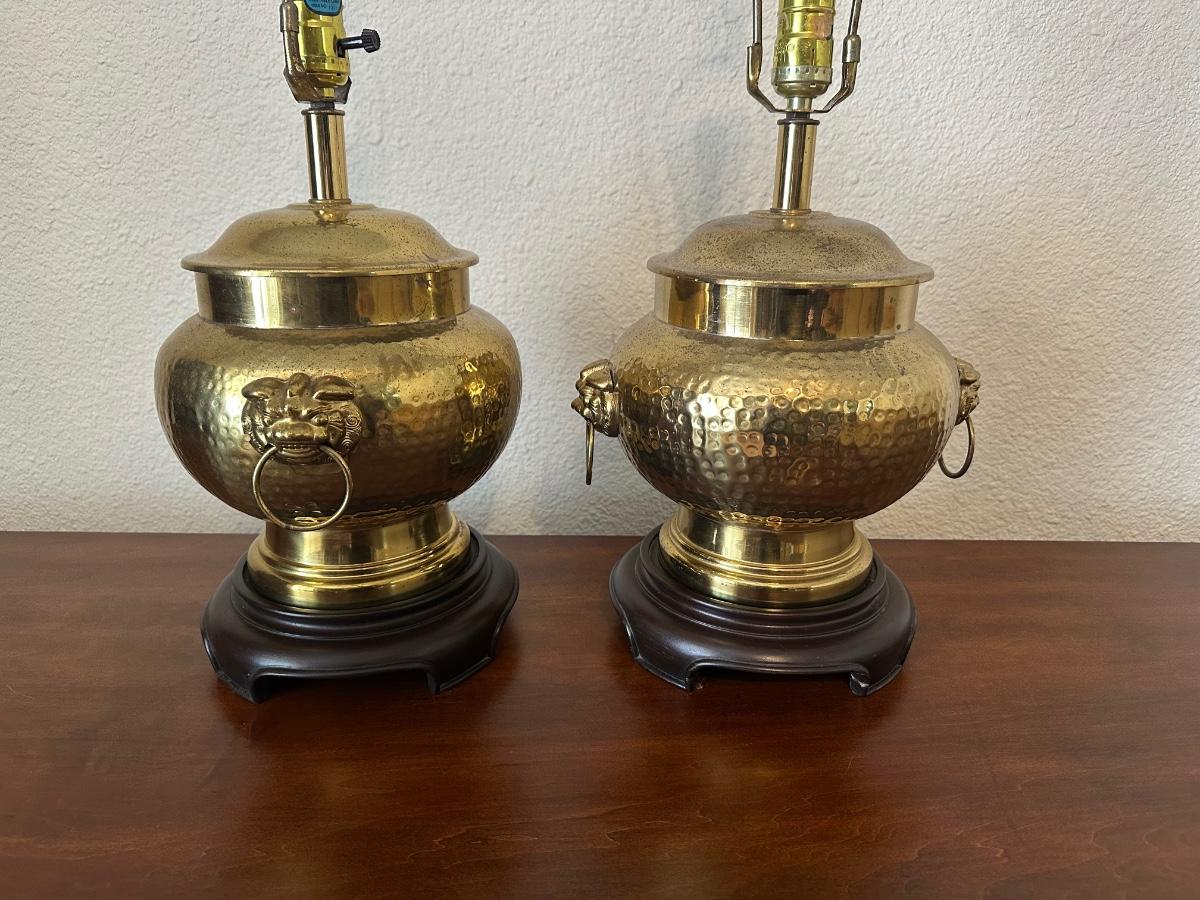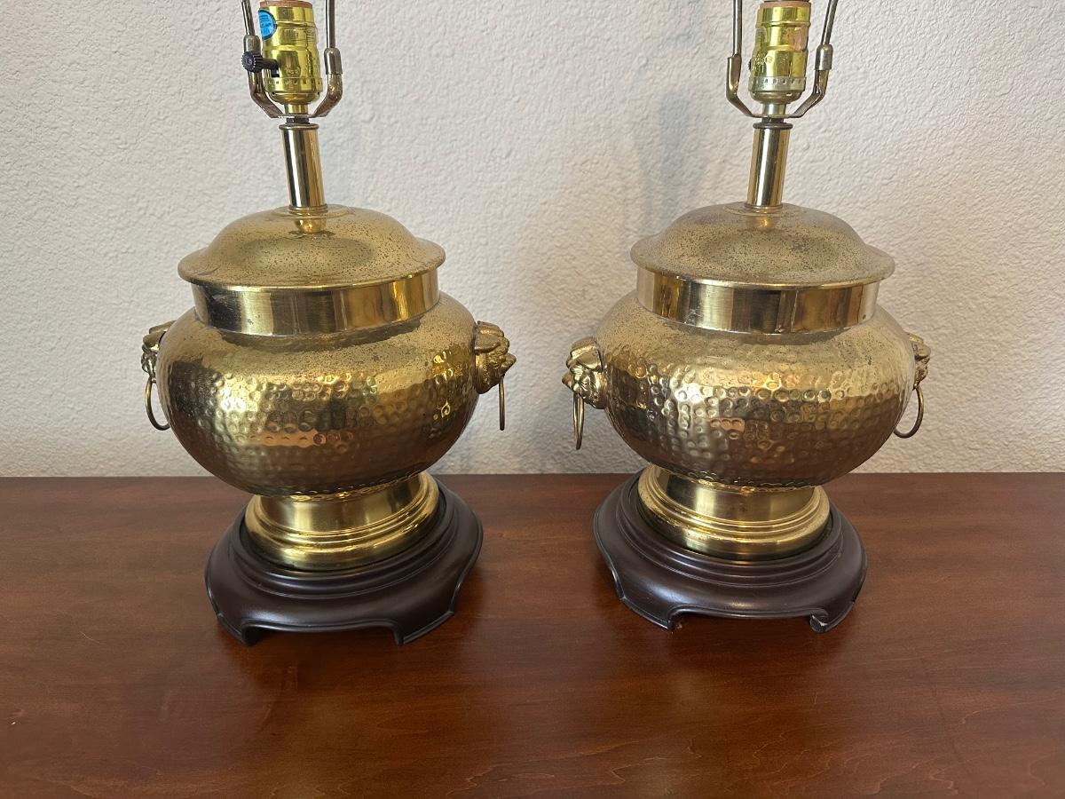 Pair of Vintage Brass Foo Dog Hammered Lamps