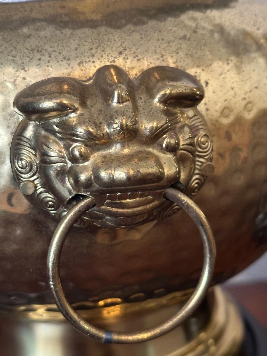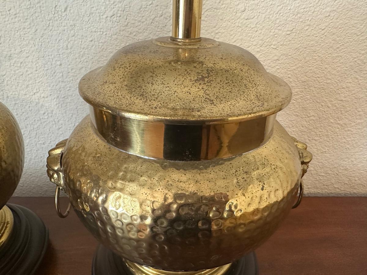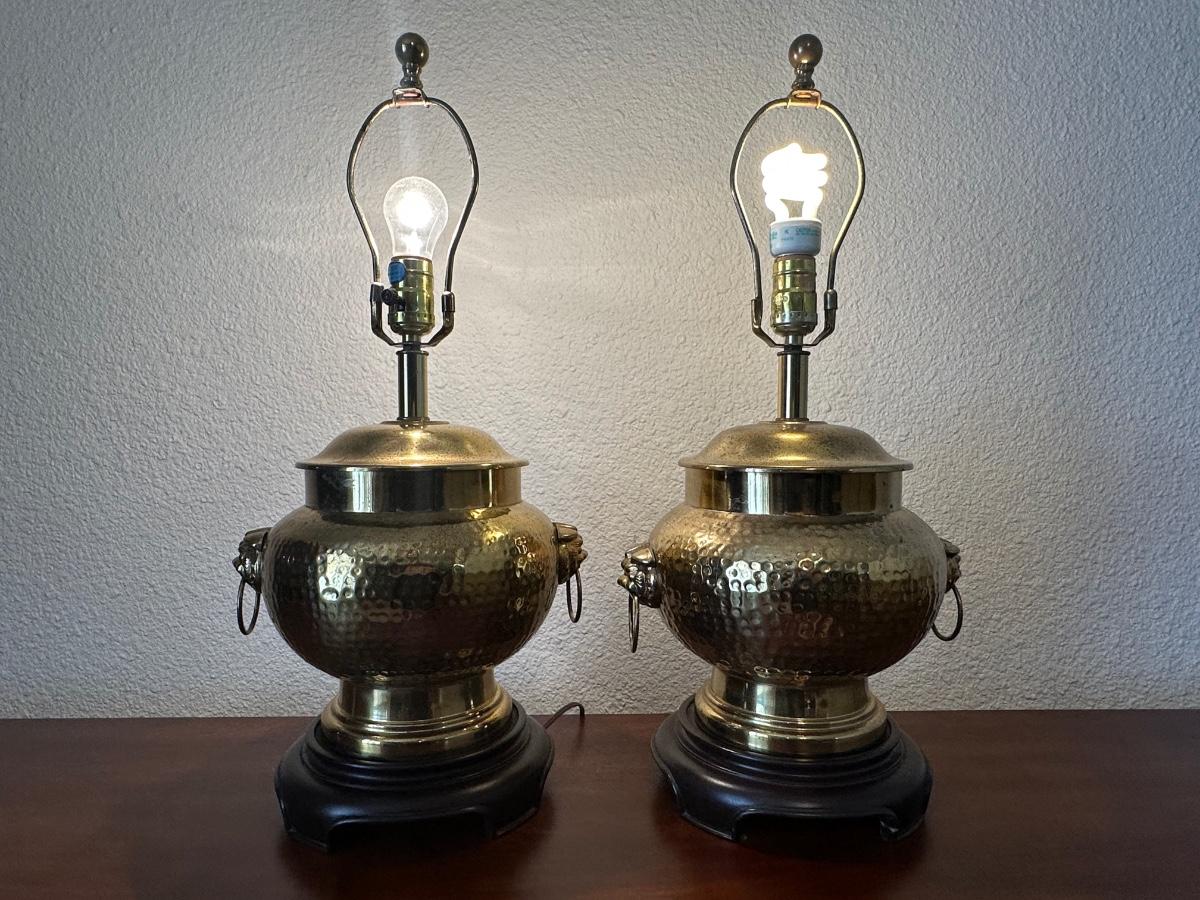 Pair of Vintage Brass Foo Dog Hammered Lamps