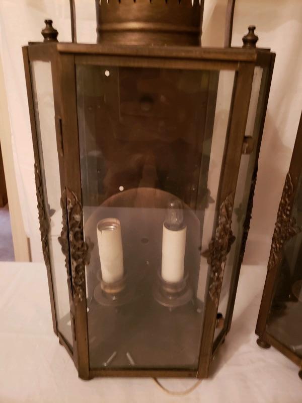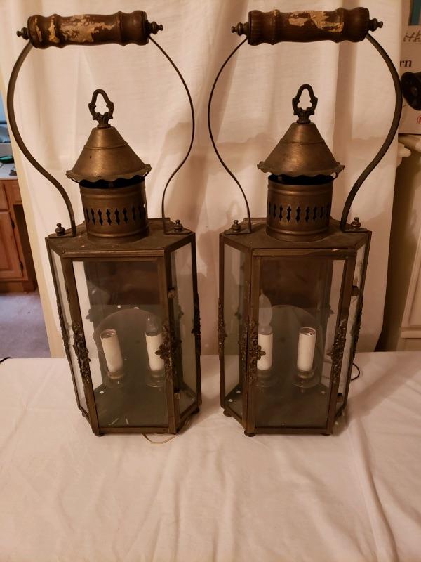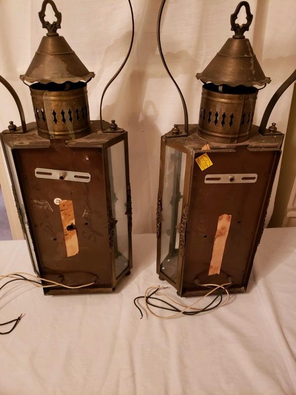 LOT #1. Pair of vintage brass porch lanterns ““ electric