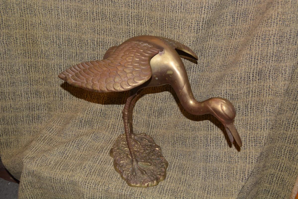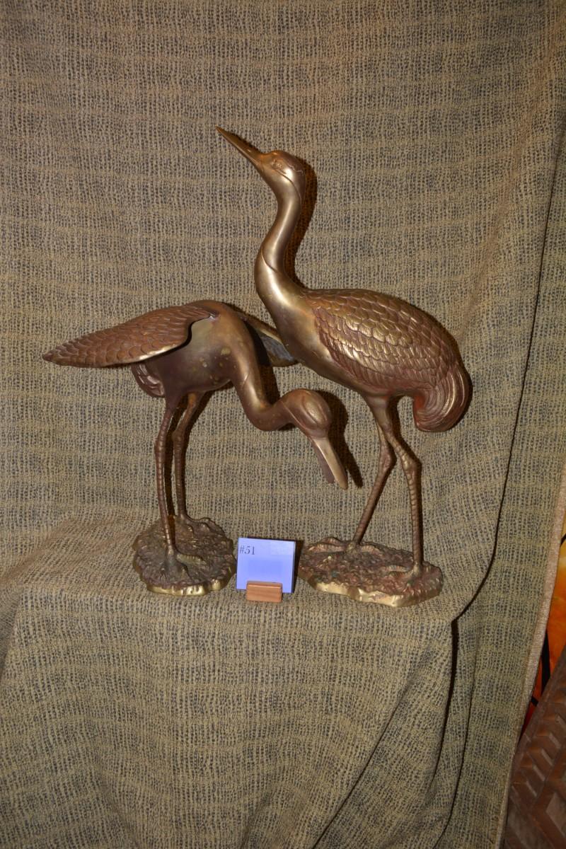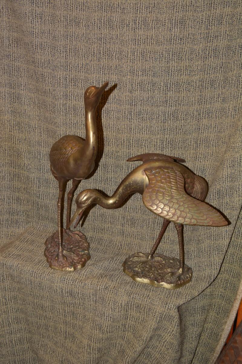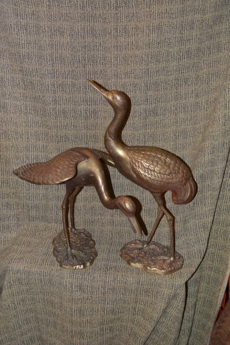 Pair of Vintage Brass Waterfowl, Korea 26”/17”