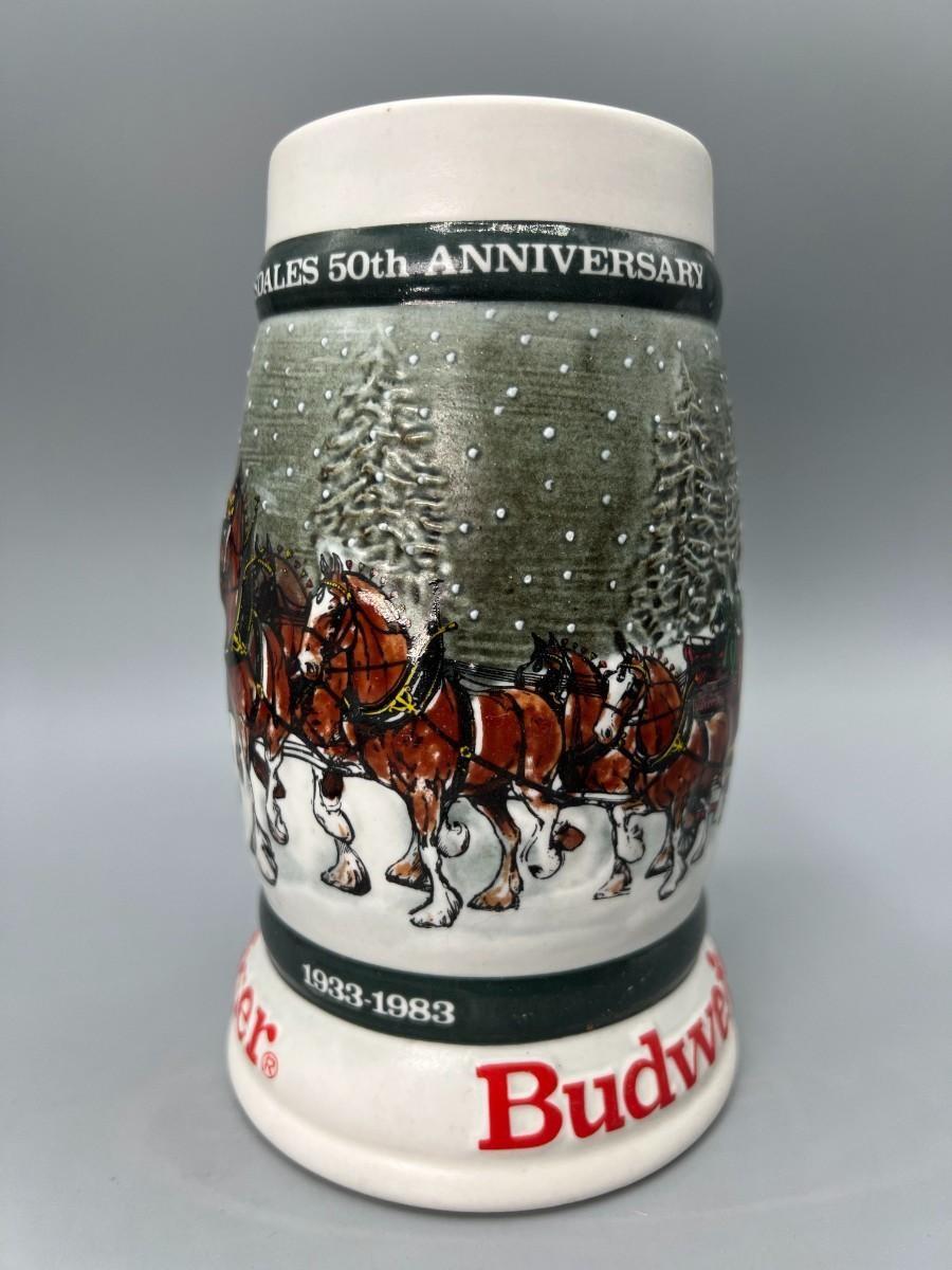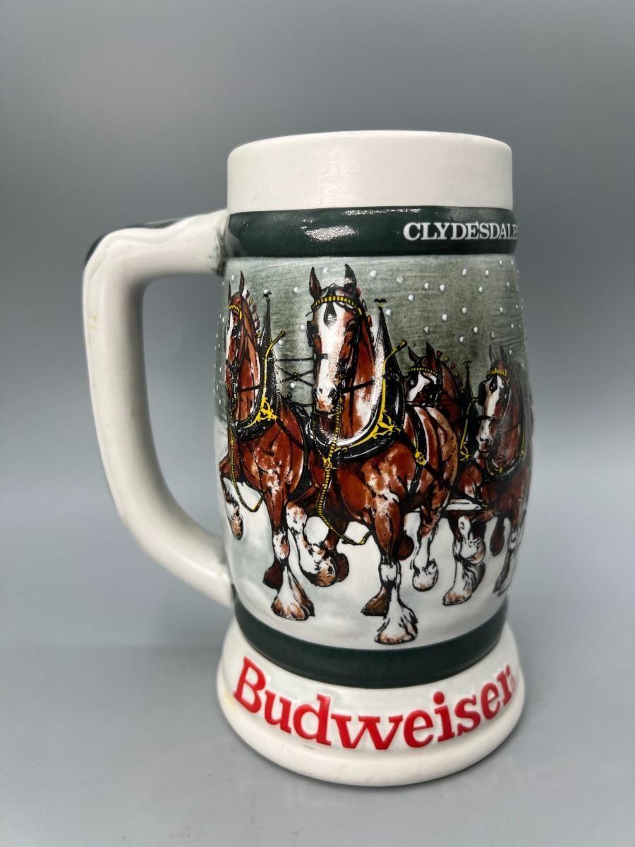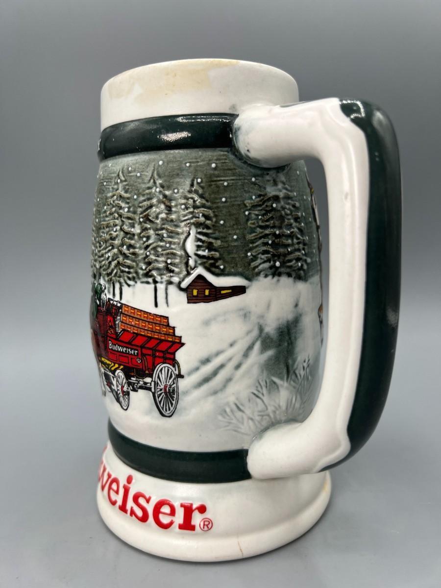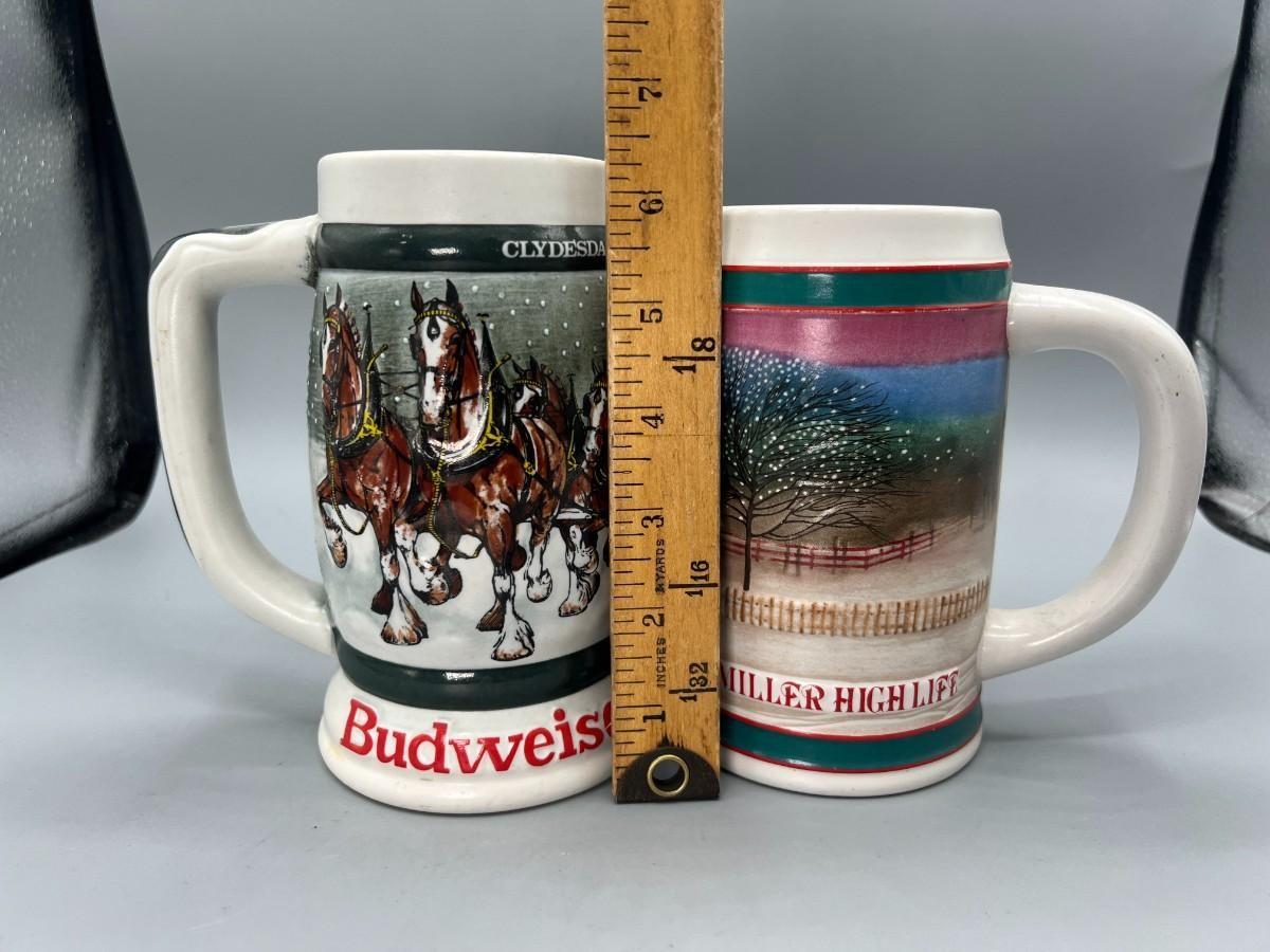Pair of Vintage Budweiser Holiday Collectible Steins Clydesdale 50th Anniversary & Miller High Life Christmas Sled Stein, there is no significant damage to the steins and is in good useable condition. Check pictures for more details and for sizing.