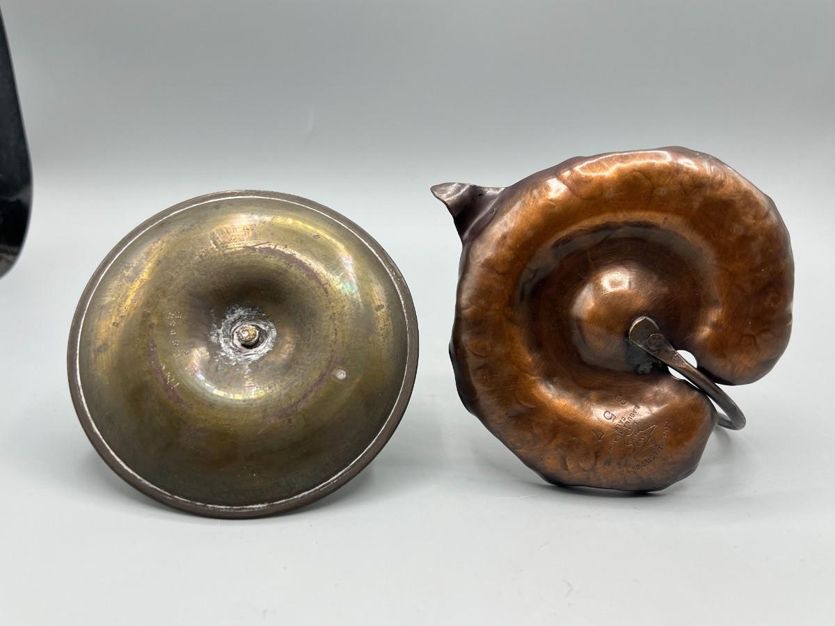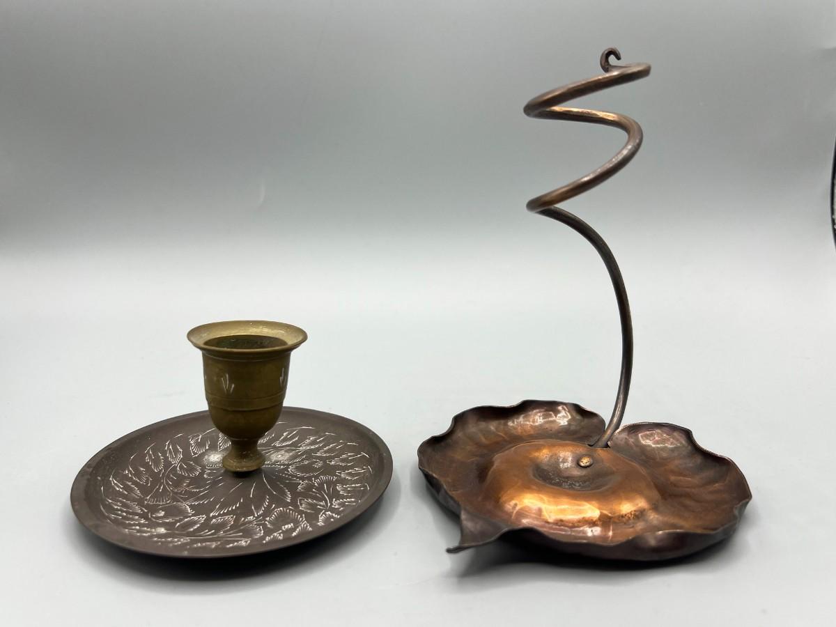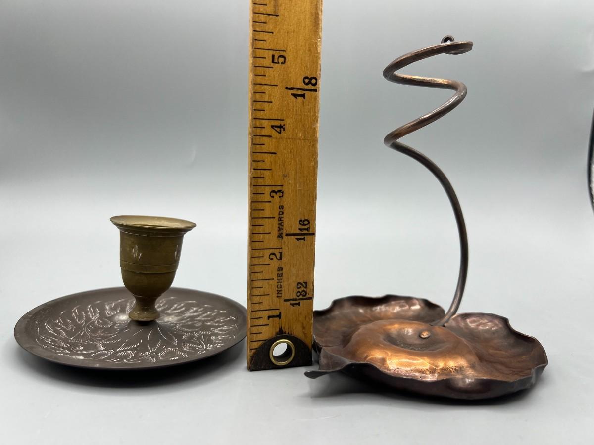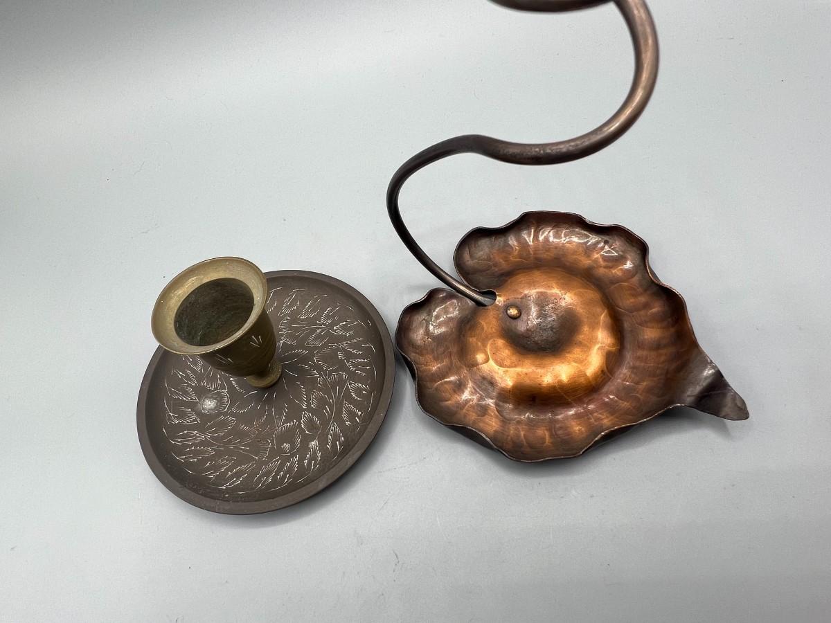 Pair of Vintage California Historical Design Craftsman Studios Hammered Copper Candle Holder 357 & Art Nouveau Styled Candle Holder