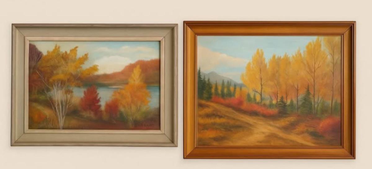 Pair of Vintage Canadian Oil Paintings – Autumn Landscape Scenes
