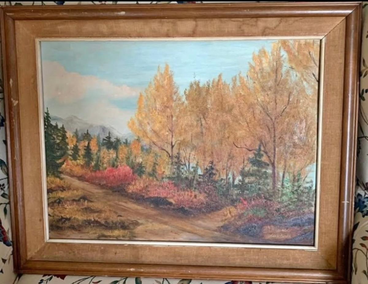Beautiful pair of original Canadian oil landscapes by Olive M. Brand, both from a Hamilton estate. Warm autumn colors and classic mid-century styling make them perfect for a cozy living room, hallway, or cabin décor. Priced to move — great value for two matching originals.