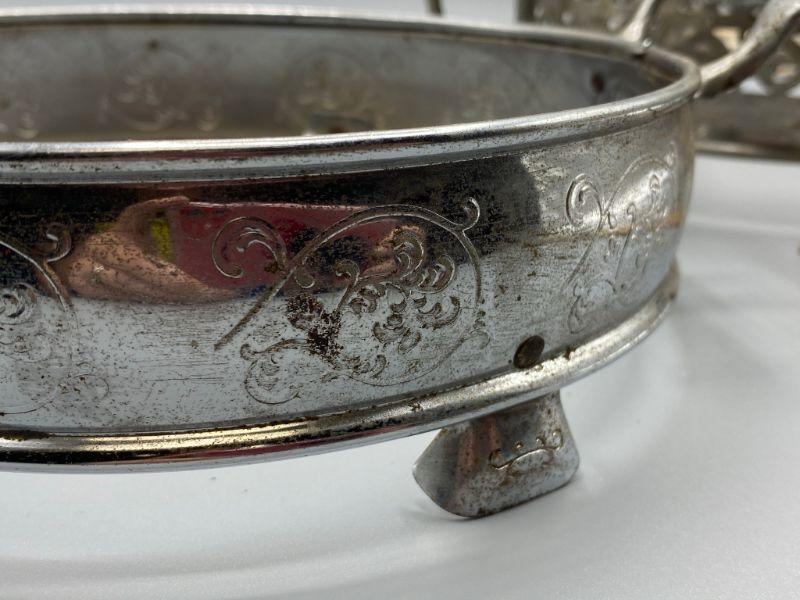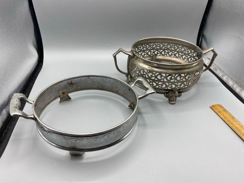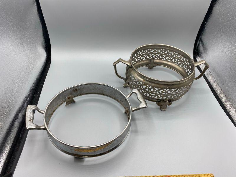 Pair of vintage casserole dish holders. Metal holders only. Signs of age.