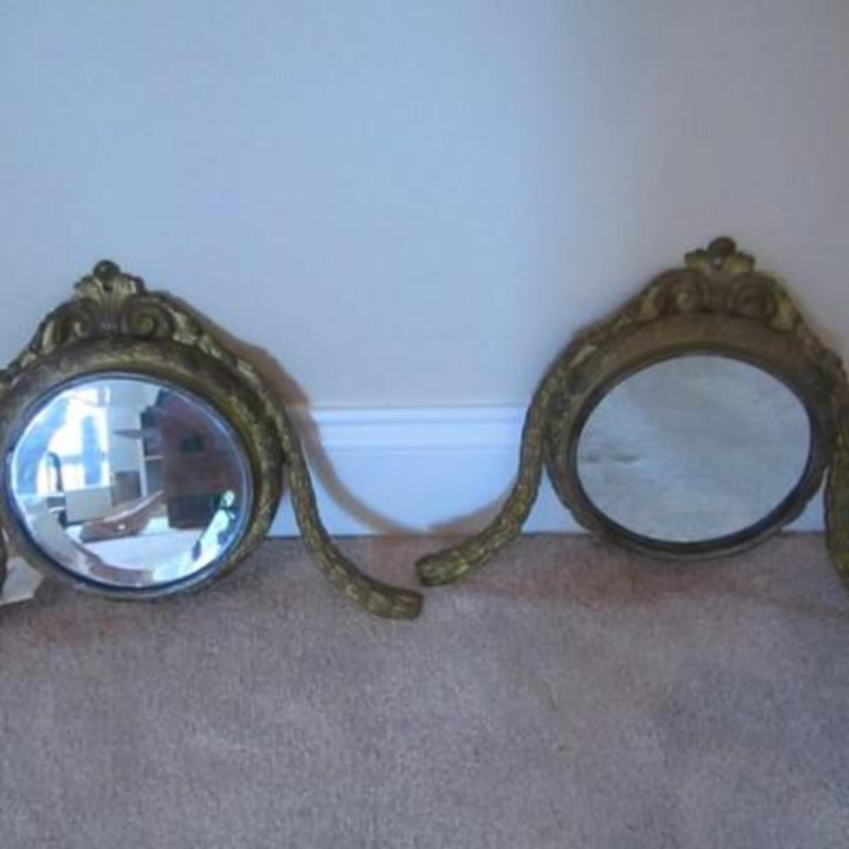 Pair of Vintage Cast Bronze Wall Mirror with Round Beveled Glass Choice B