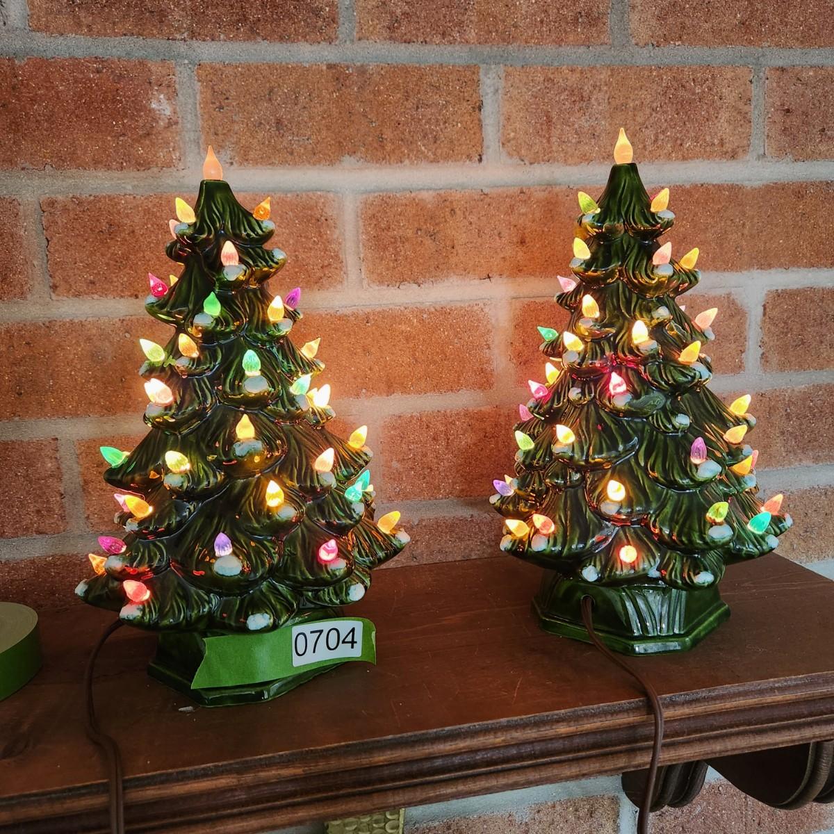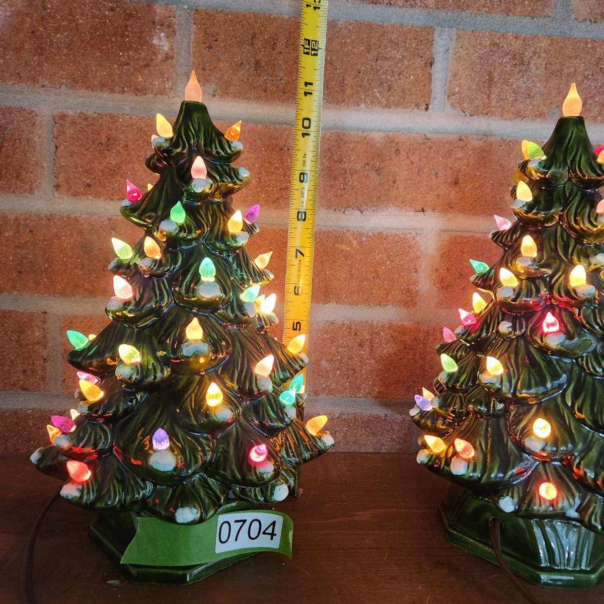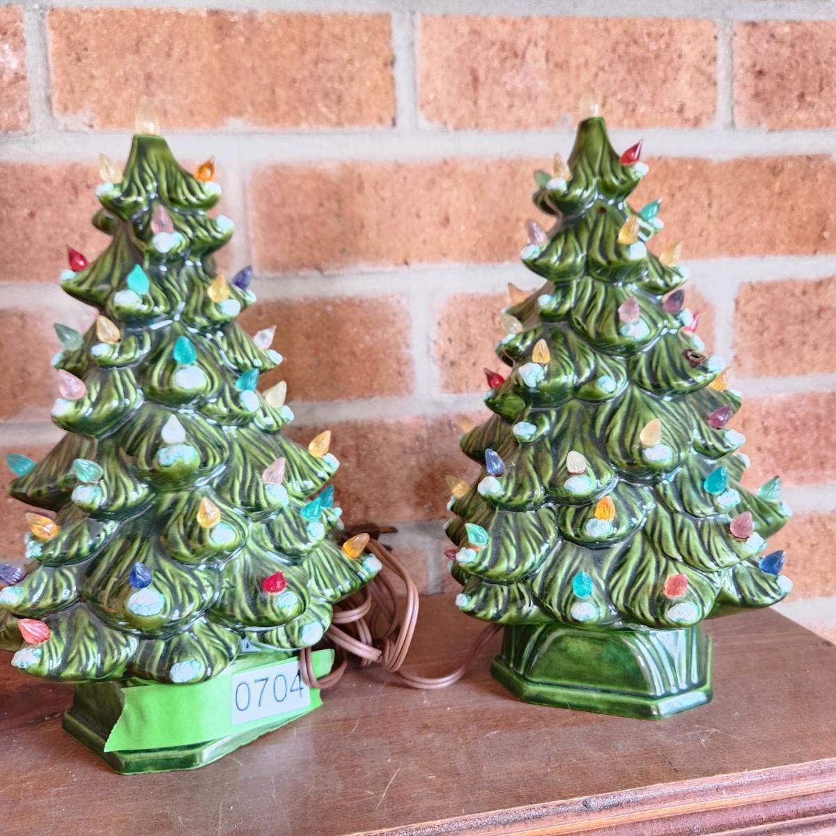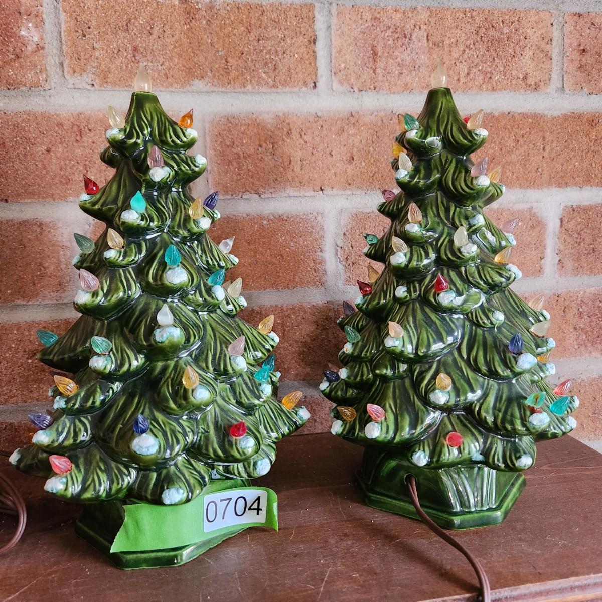 Pair of Vintage Ceramic Christmas Trees 11" tall