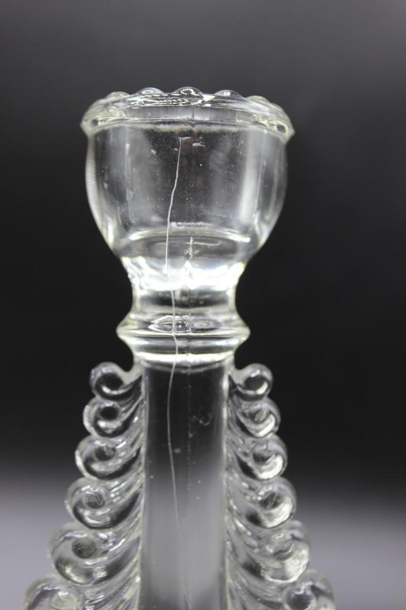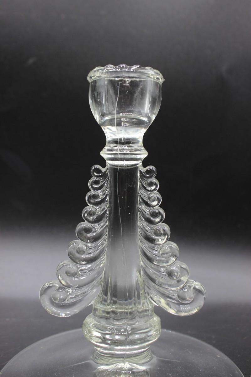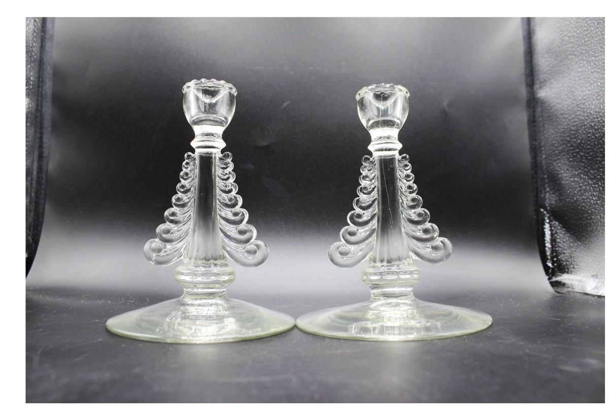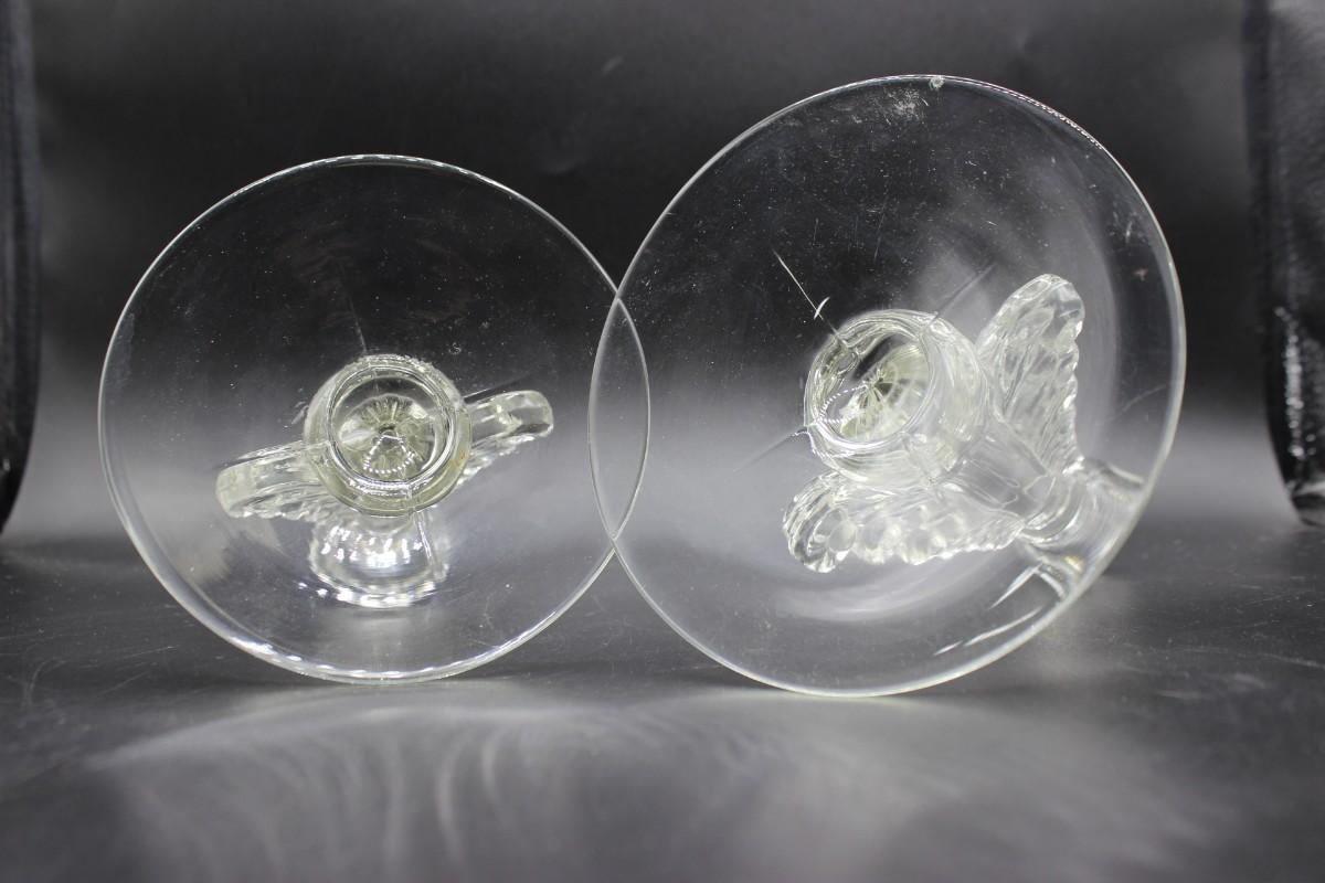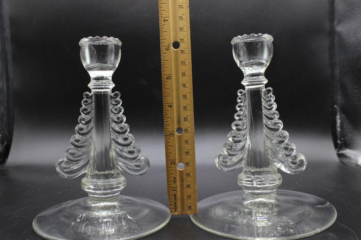 Pair of Vintage Clear Crystal Glass Candleholders, there are no significant cracks or chips to either of the glass candleholders and is in good useable condition. There is a large scratch along one of the sides, check pictures for more details and for sizing.