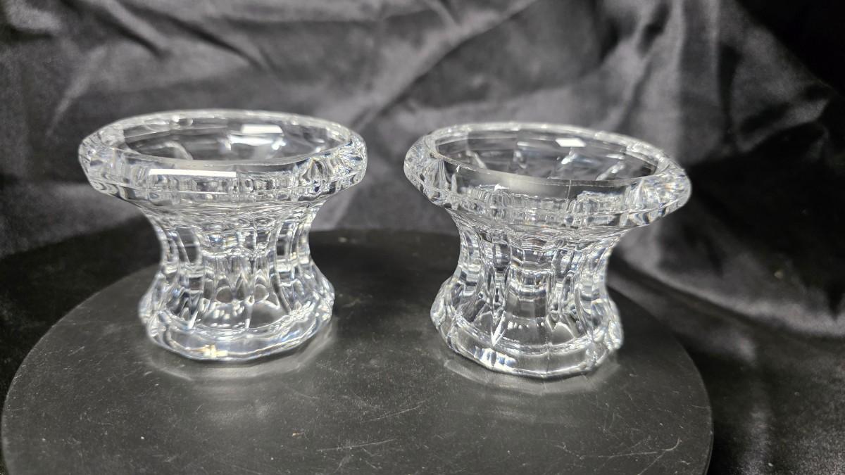 Pair of Vintage Clear Pressed Glass Faceted Candle Holders – Heavy Crystal-Style Glow