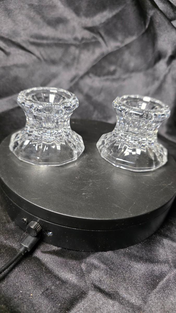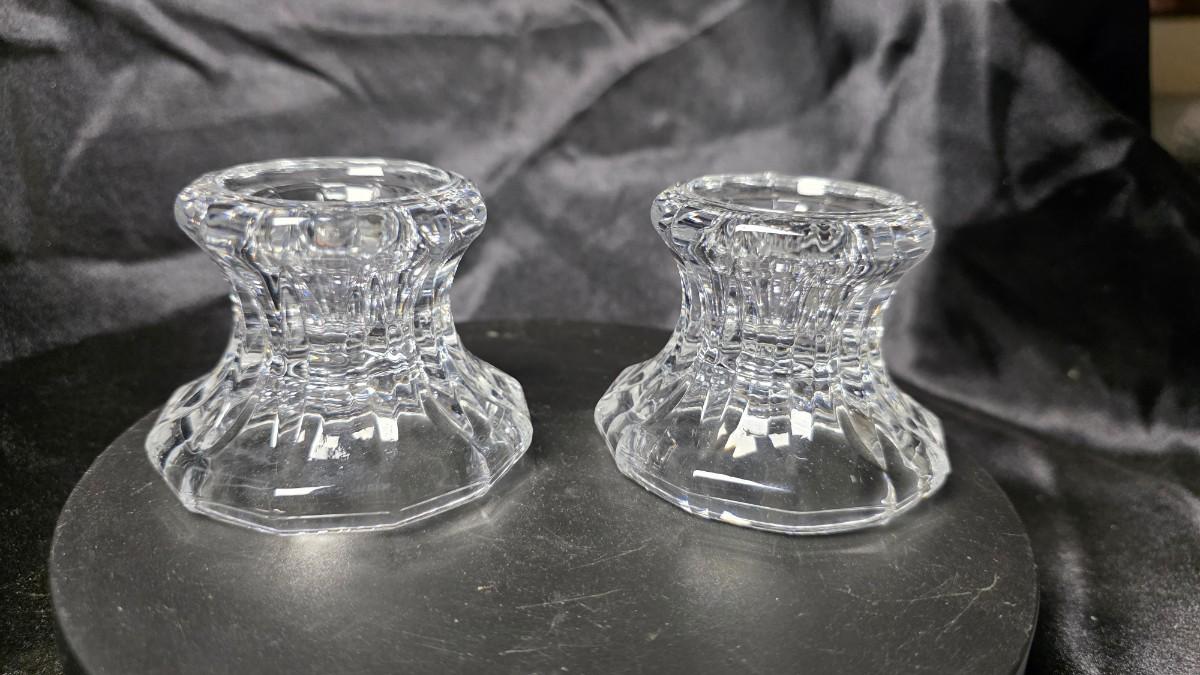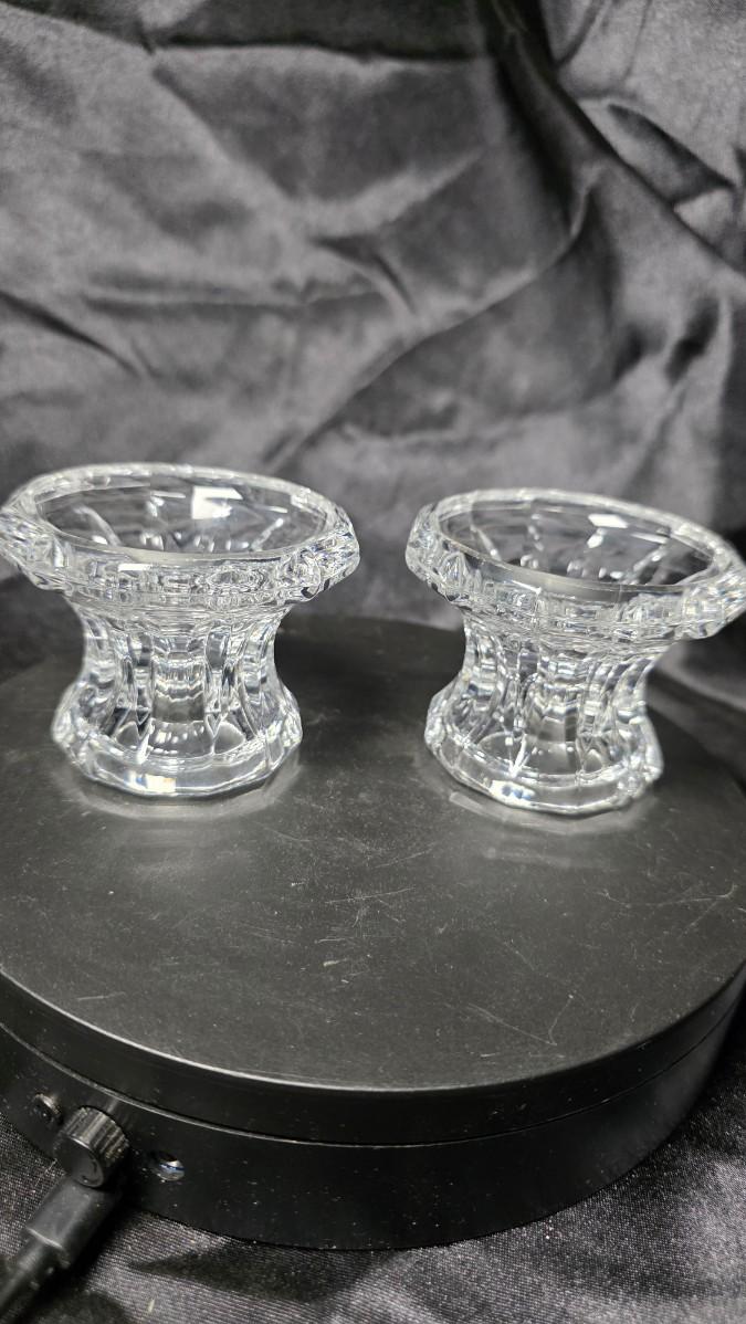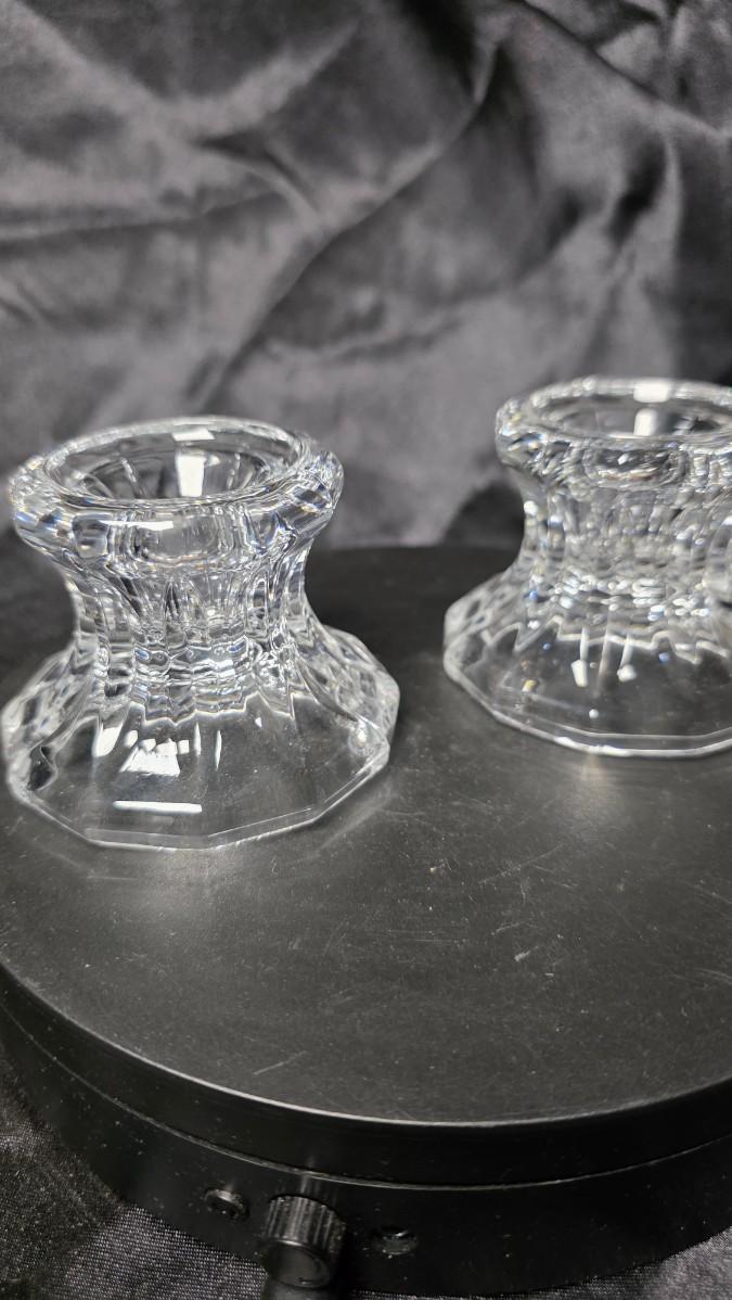 Pair of Vintage Clear Pressed Glass Faceted Candle Holders – Heavy Crystal-Style Glow