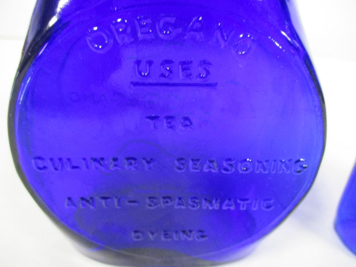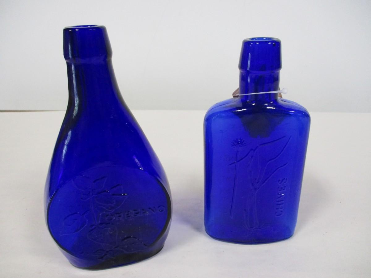 Pair of Vintage Clevenger Bros Blown Glass Herb Bottles