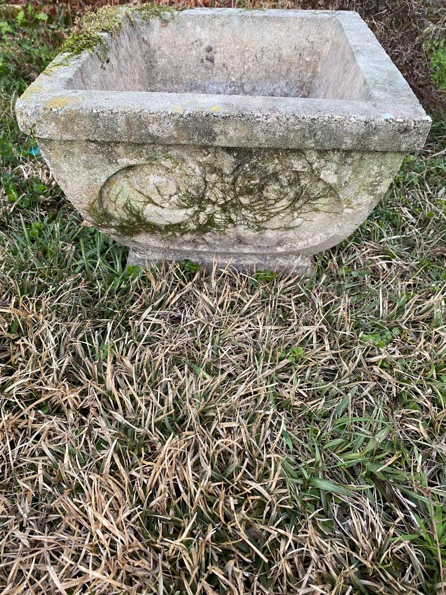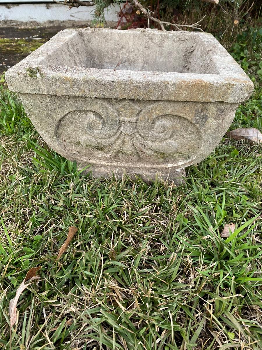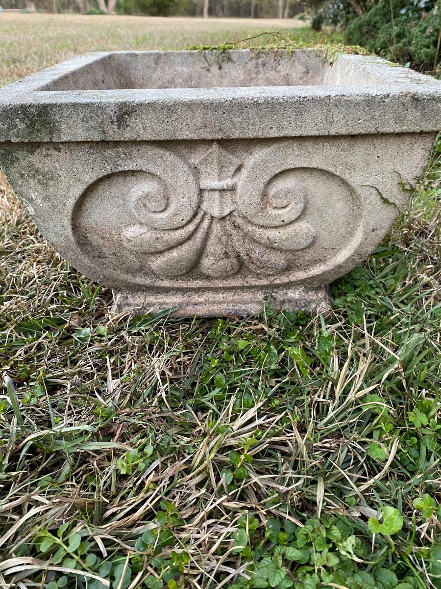 Pair of vintage concrete square planters Approx 12” square. In good condition.
