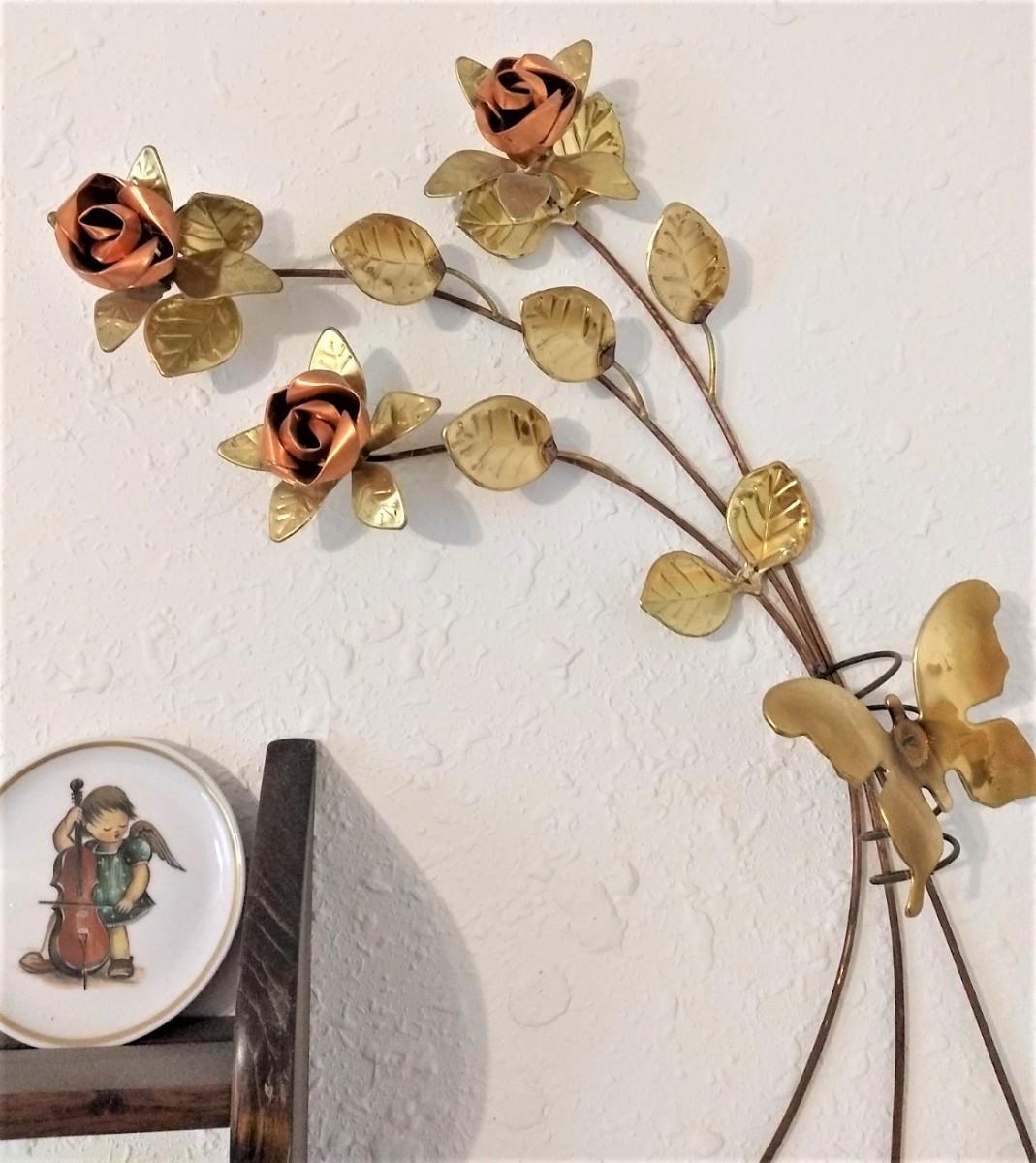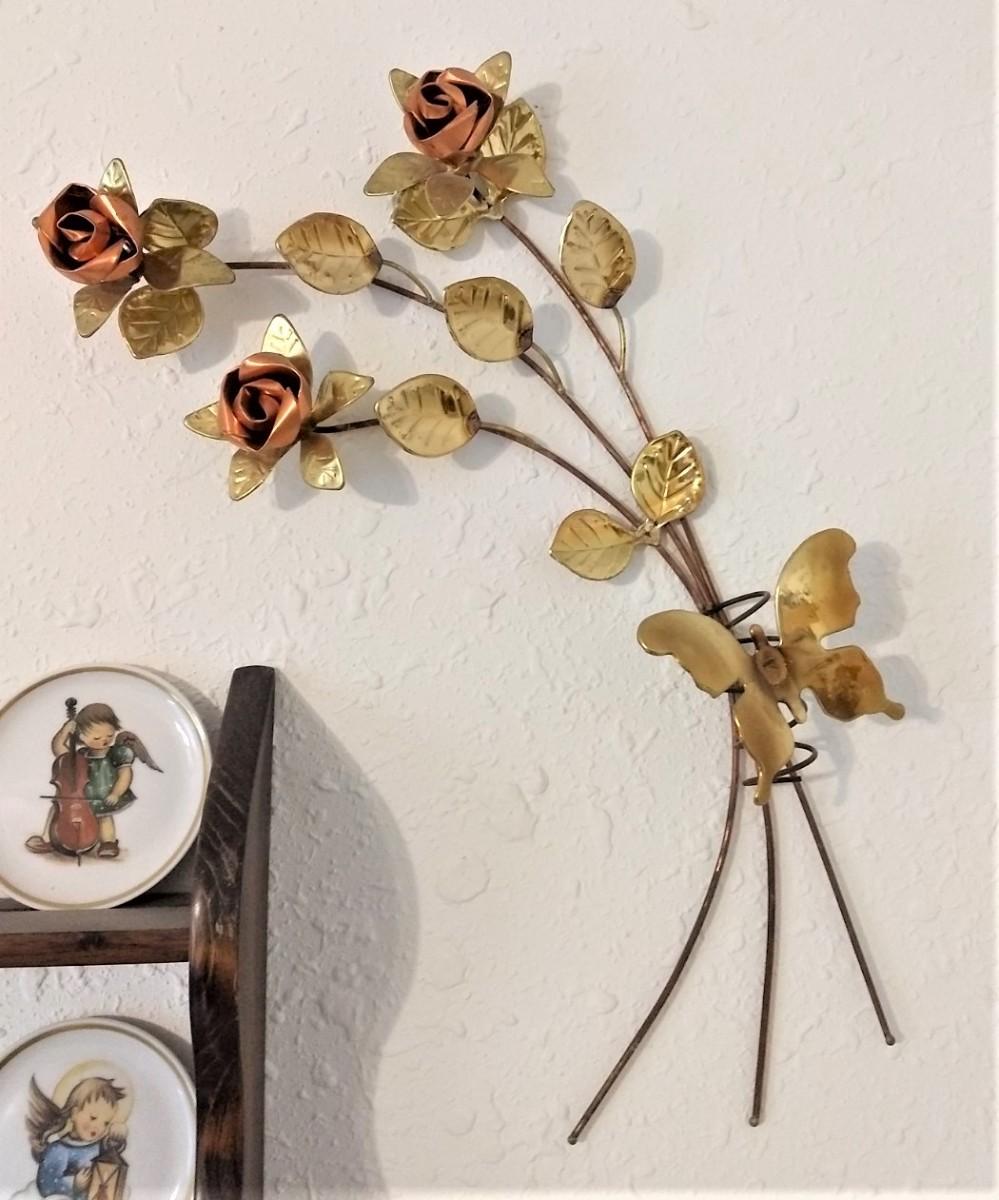 Pair of Vintage Copper Finish Metal Art Roses Wall Decor includes Both Right and Left Curve Pieces 20" the 2nd piece that curves to right is not shown