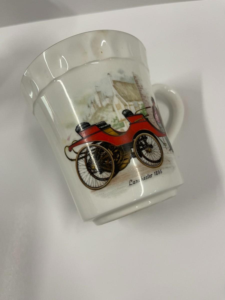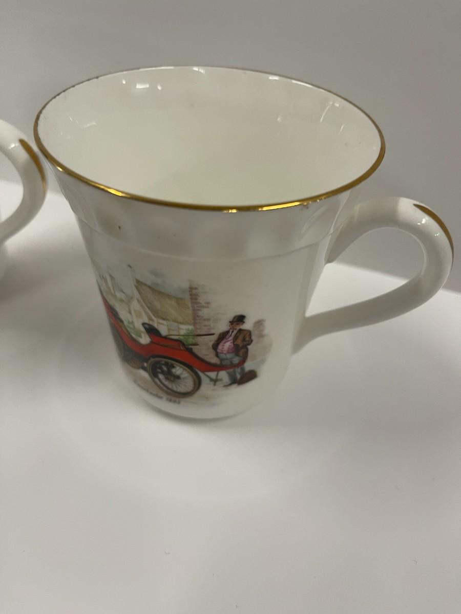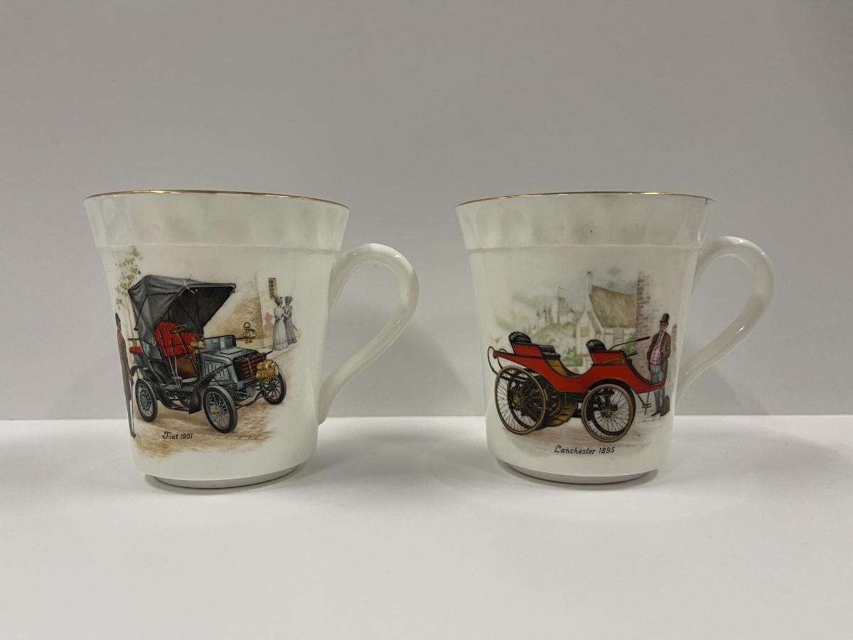 Pair of Vintage car themed Crown Staffordshire Fine Bone China Coffee Cups.