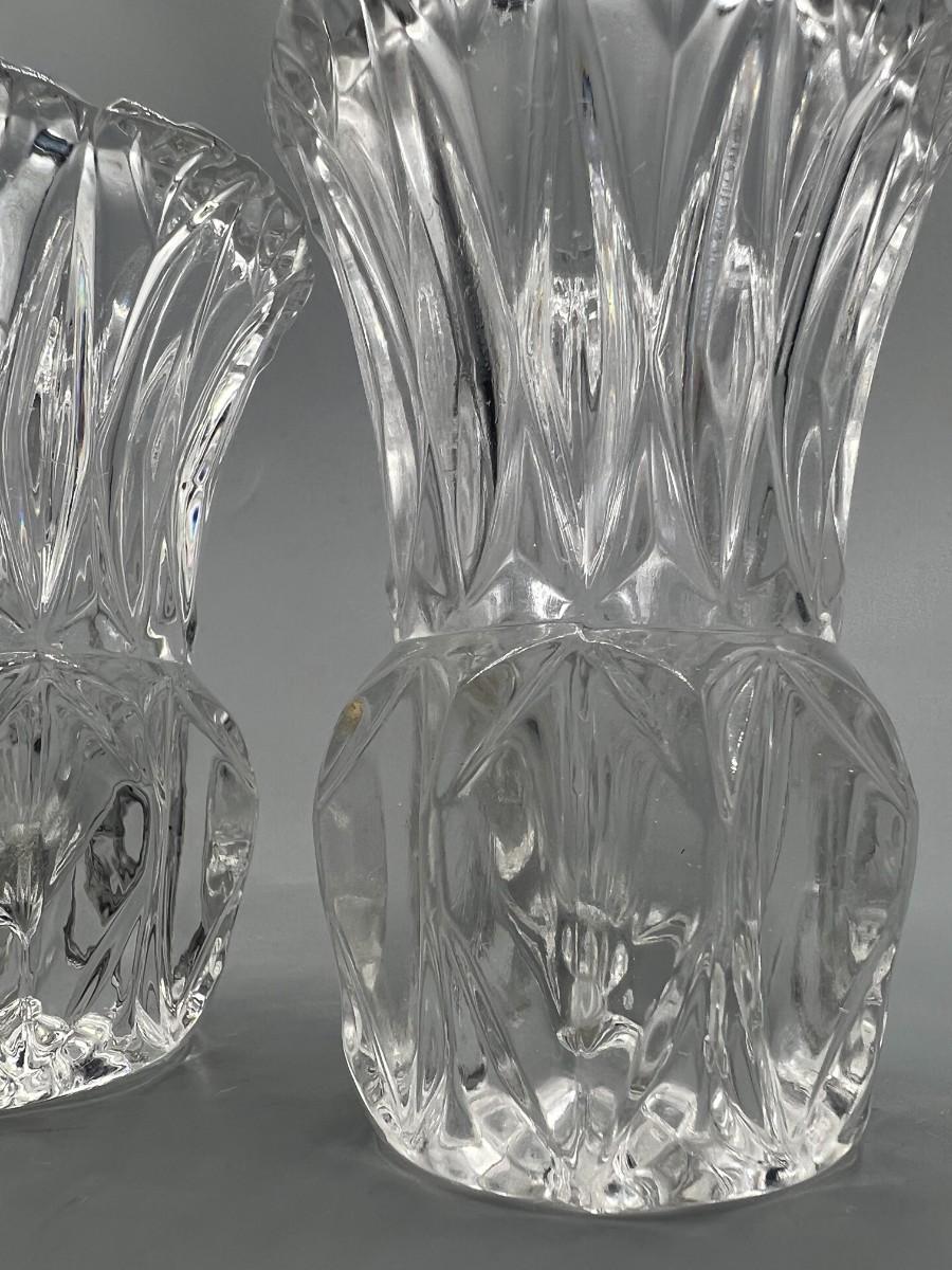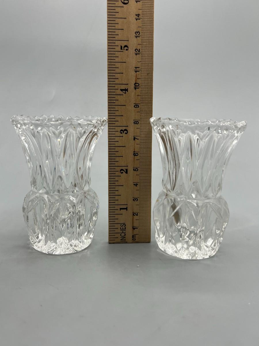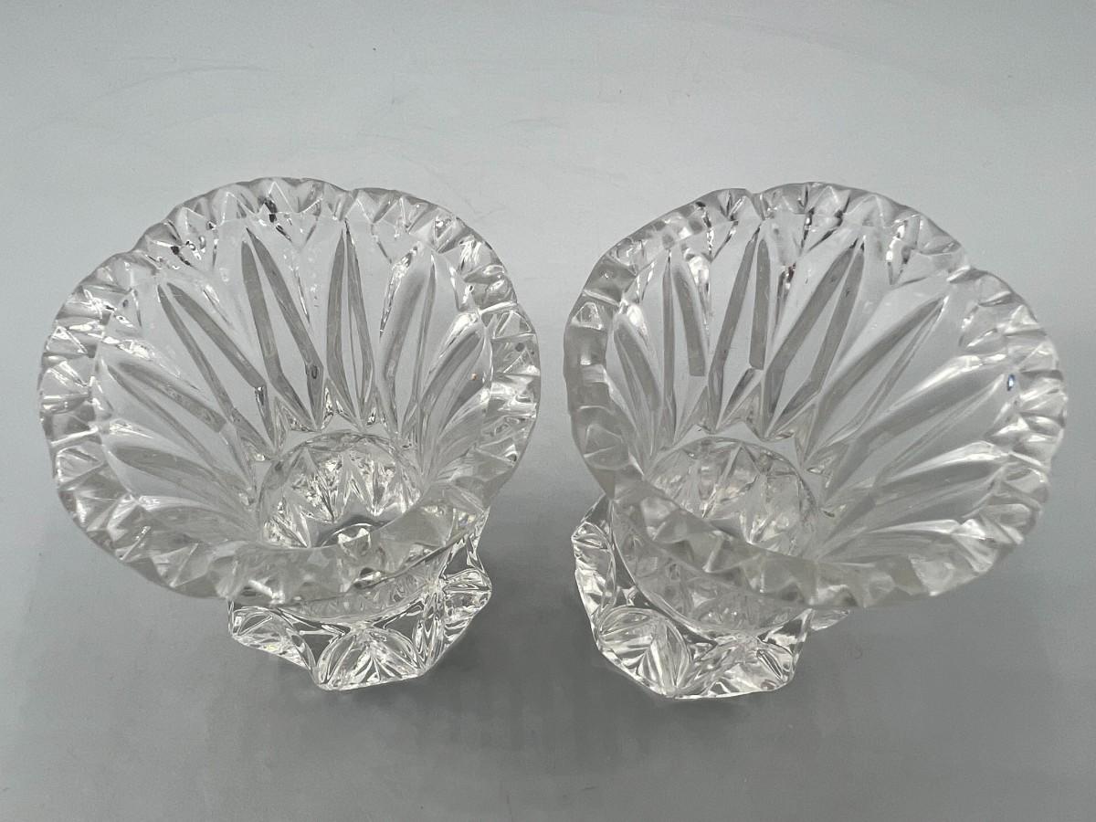 Pair of Vintage Crystal Glass Sawtooth Edged Toothpick Holders