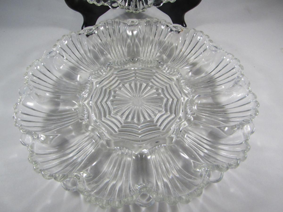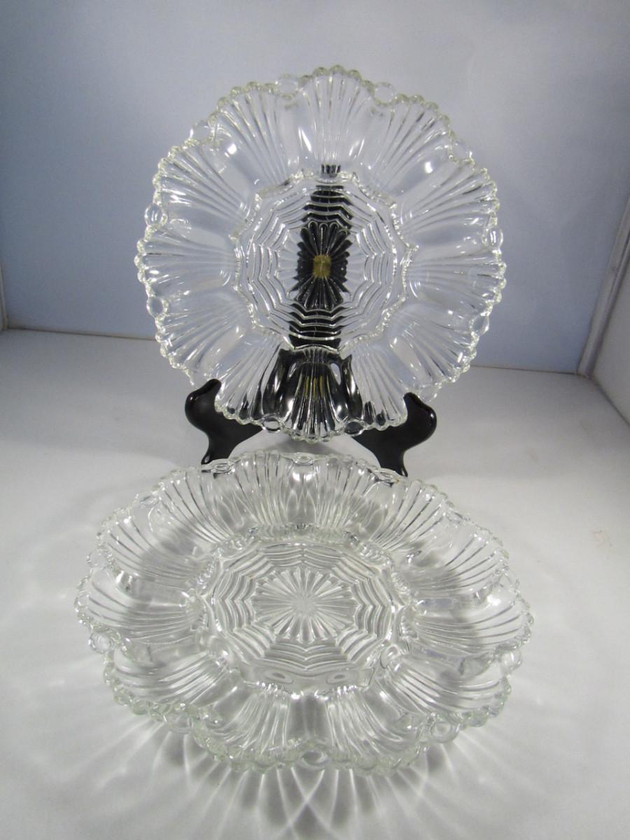 Pair of Vintage Deviled Egg Glass Matching Serving Plates 10"