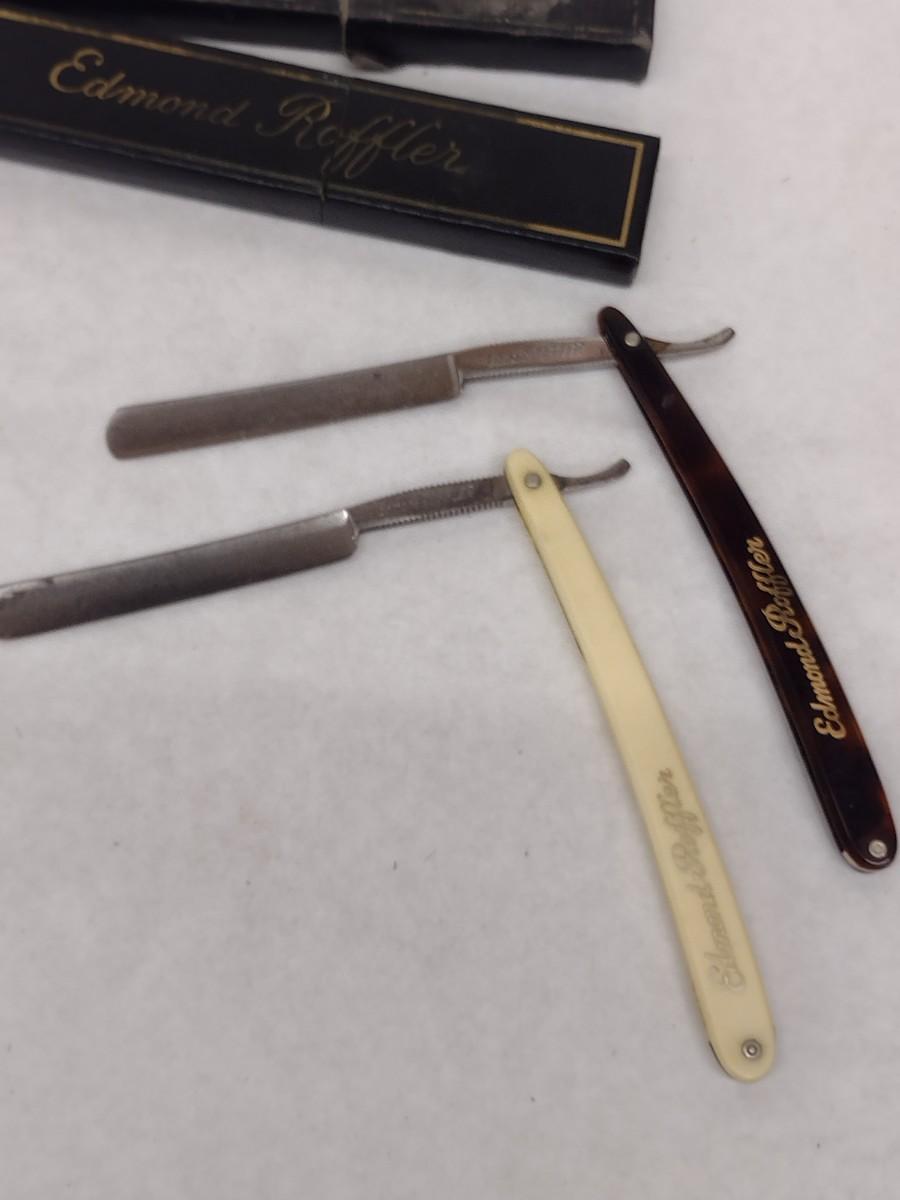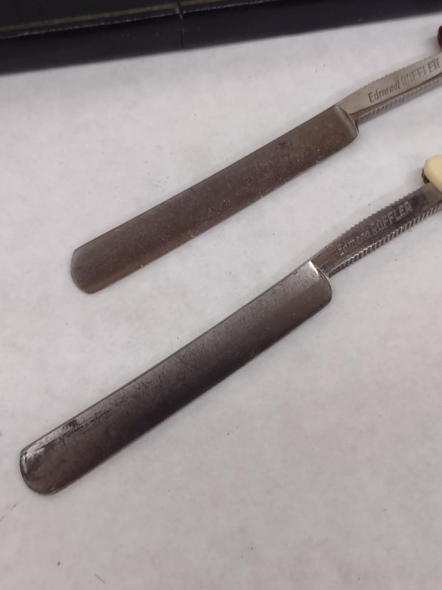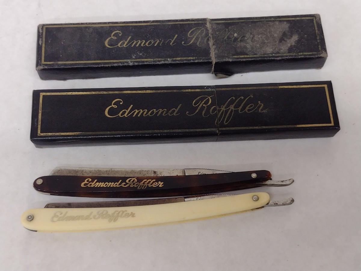 Pair of Vintage Edmond Roffler Straight Razors with Celluloid Handles with Boxes (#9)