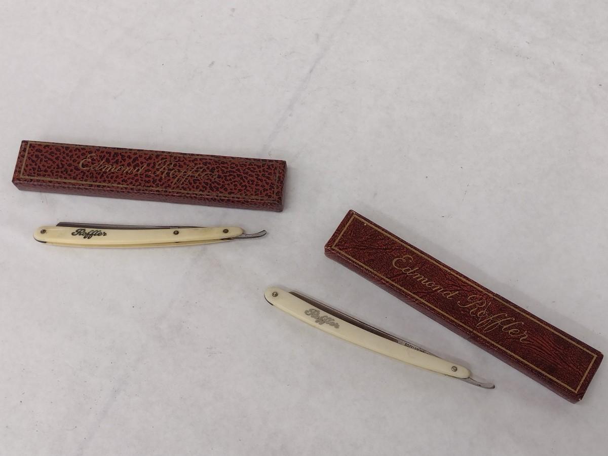 Pair of Vintage Edmond Roffler Straight Razors with Celluloid Handles with Boxes (#7)