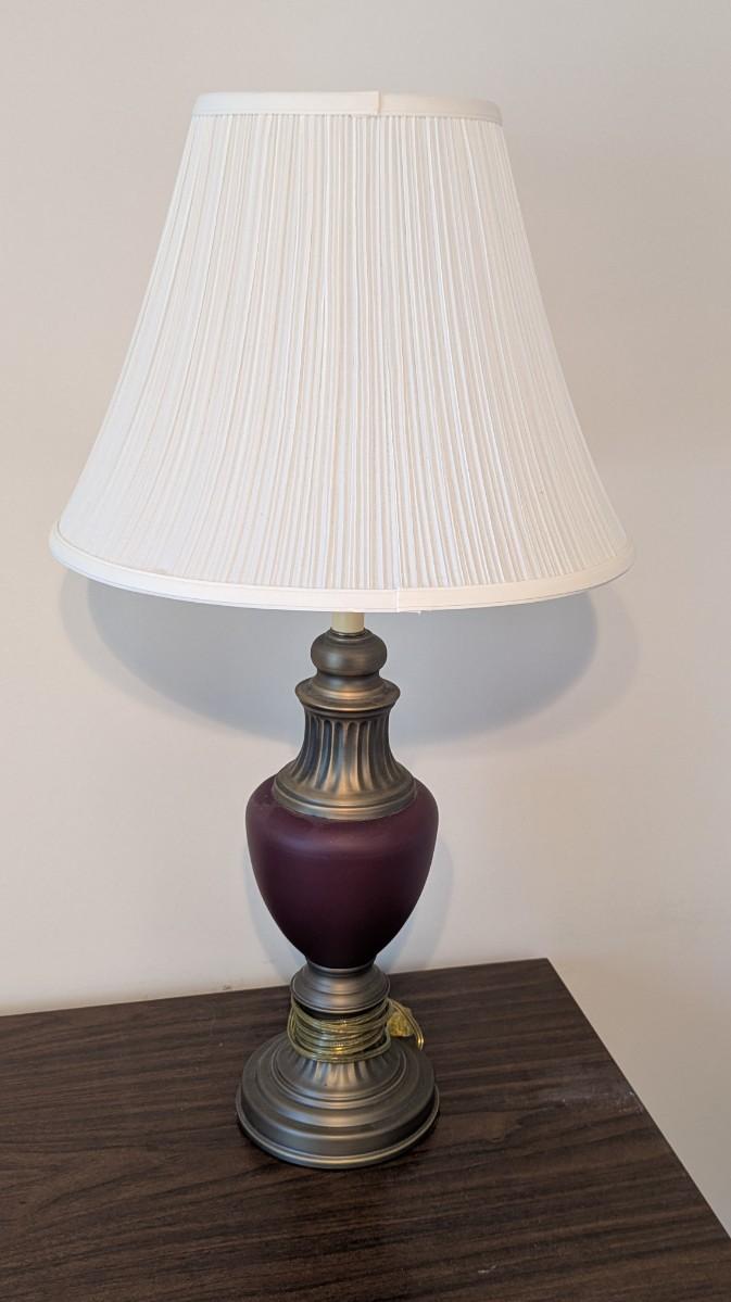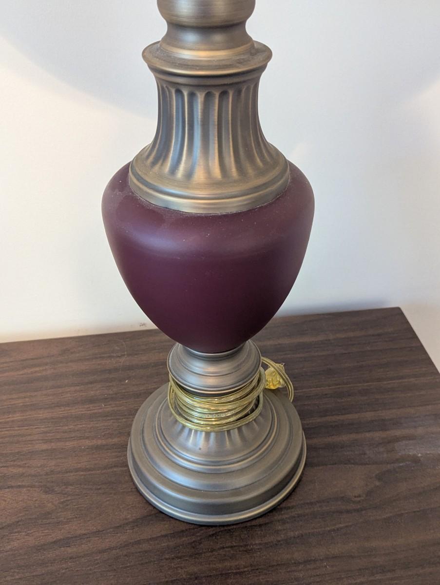 Pair Of Vintage Excelsior Brass & Maroon Enamel Table Lamps