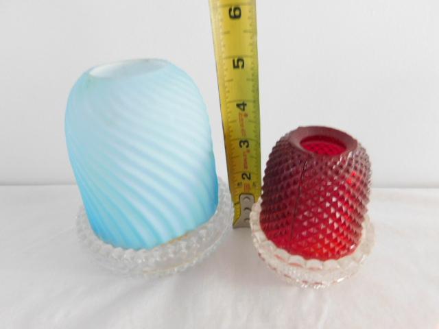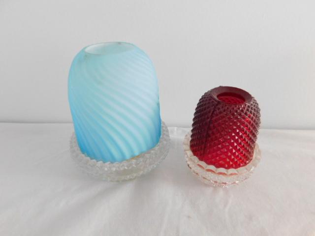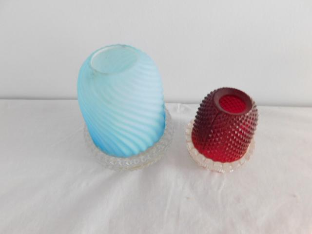 Pair of Vintage Fenton Fairy Lights blue shade has minor imperfection as shown