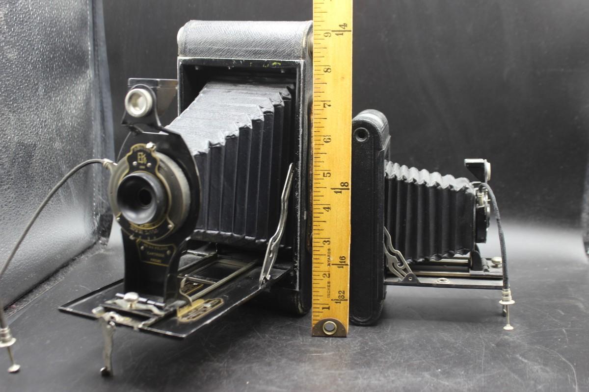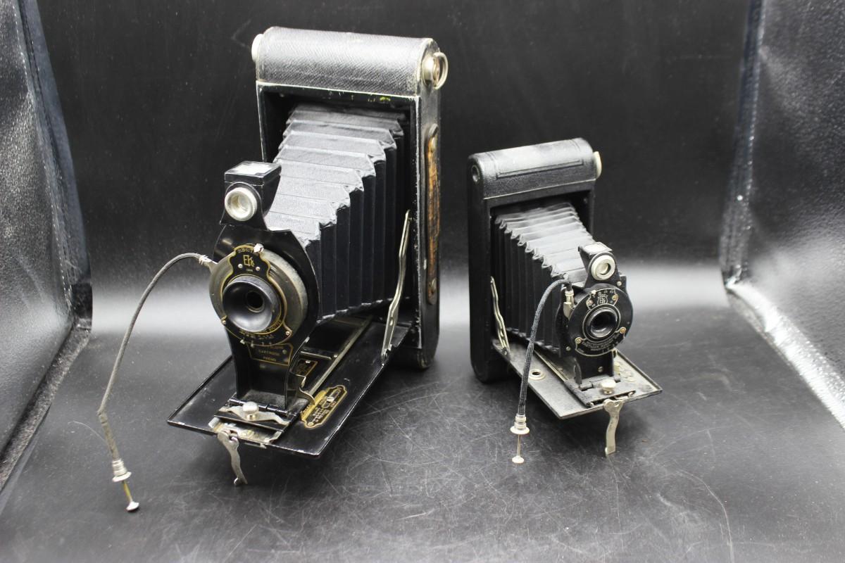Pair of Vintage Film Cameras Kodak Premo No. 3A Folding Cartridge & Folding Hawkeye No. 2 Model B