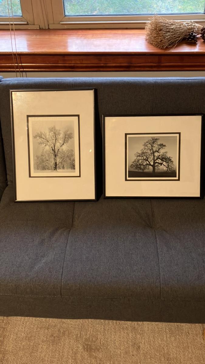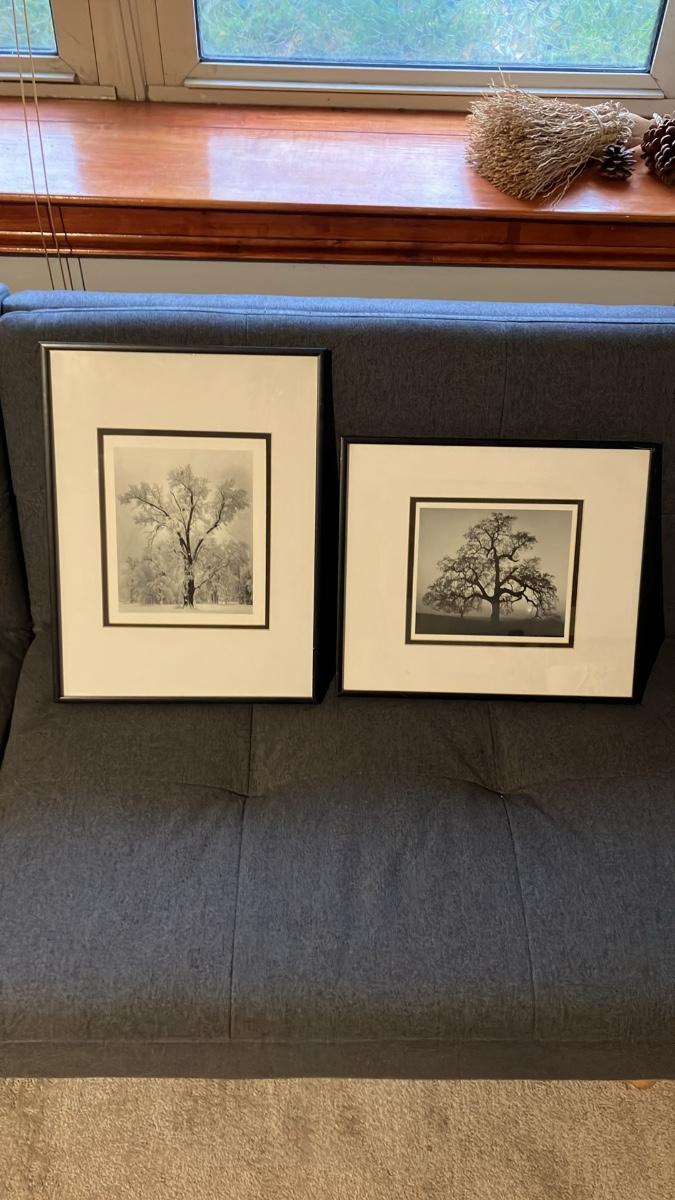 Pair of Vintage Framed Ansel Adams Prints - Oak Tree Snowstorm Yosemite & Oak Tree Sunset City