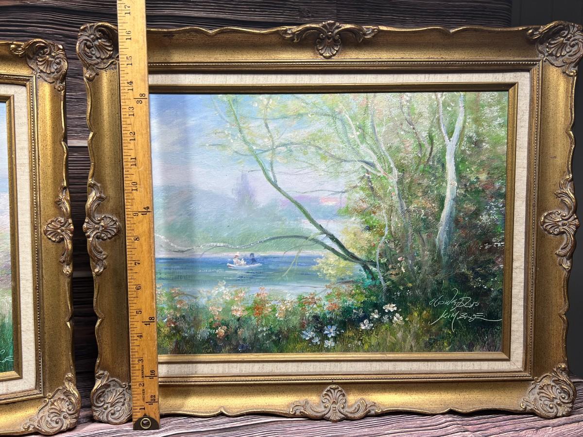 Pair of Vintage Framed & Signed Howard Kimble Home Decor Impressionist Landscape Oil Paintings