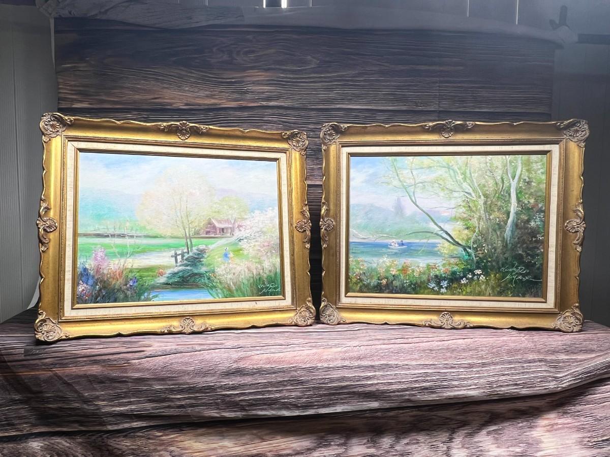 Pair of Vintage Framed & Signed Howard Kimble Home Decor Impressionist Landscape Oil Paintings, there is no significant damage to the frames or the canvas and is in good displayable condition. Check pictures for more details and for sizing.