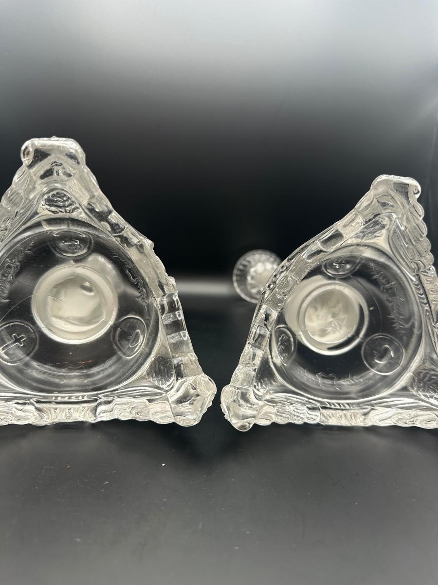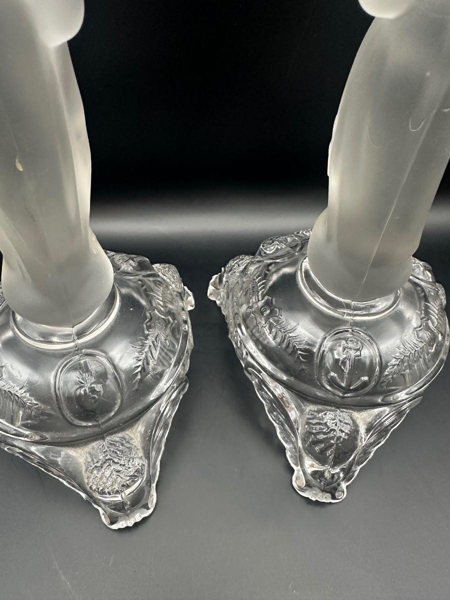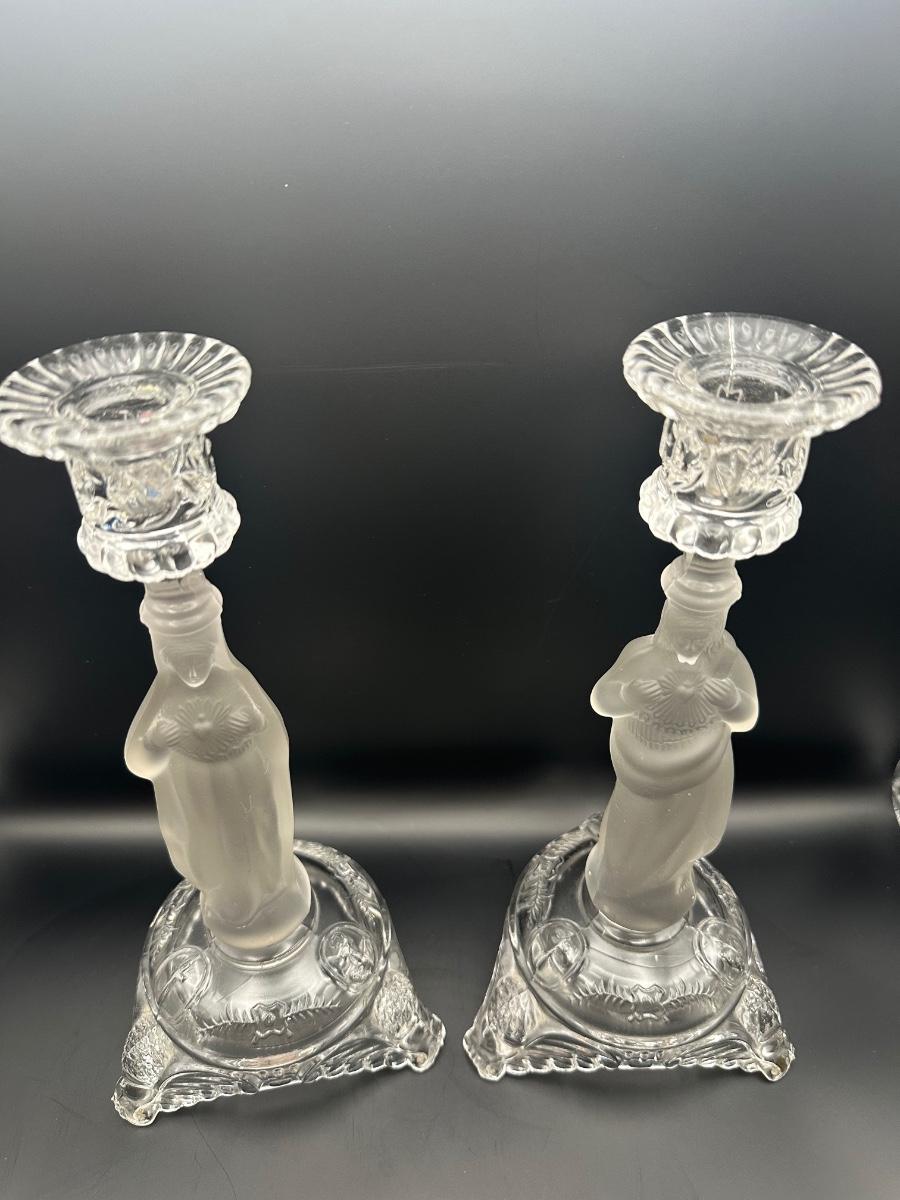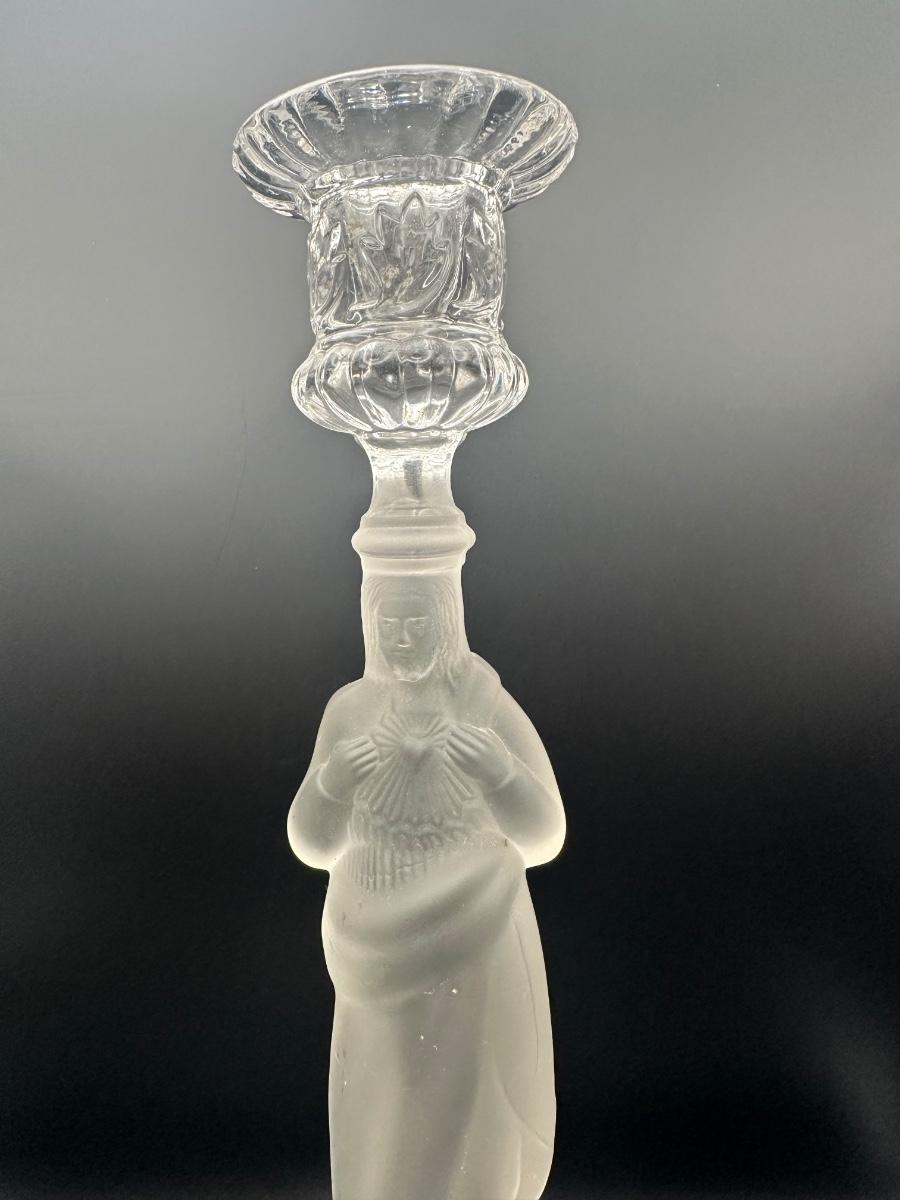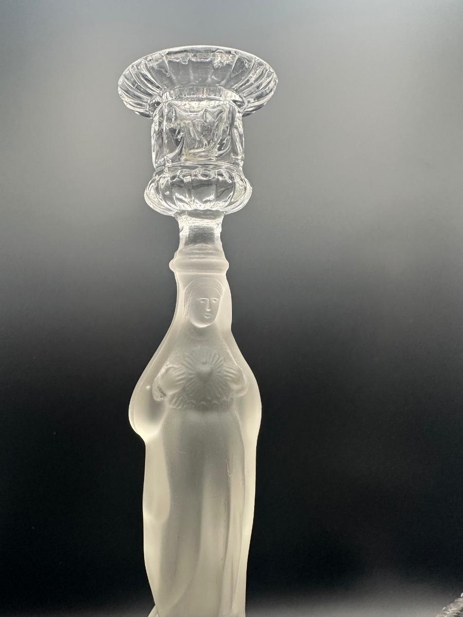 Pair of Vintage Frosted Glass Religious Figural Candle Holders