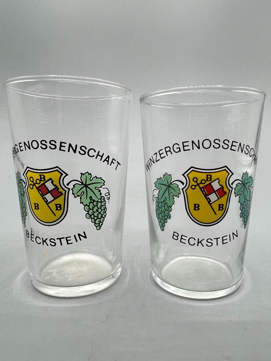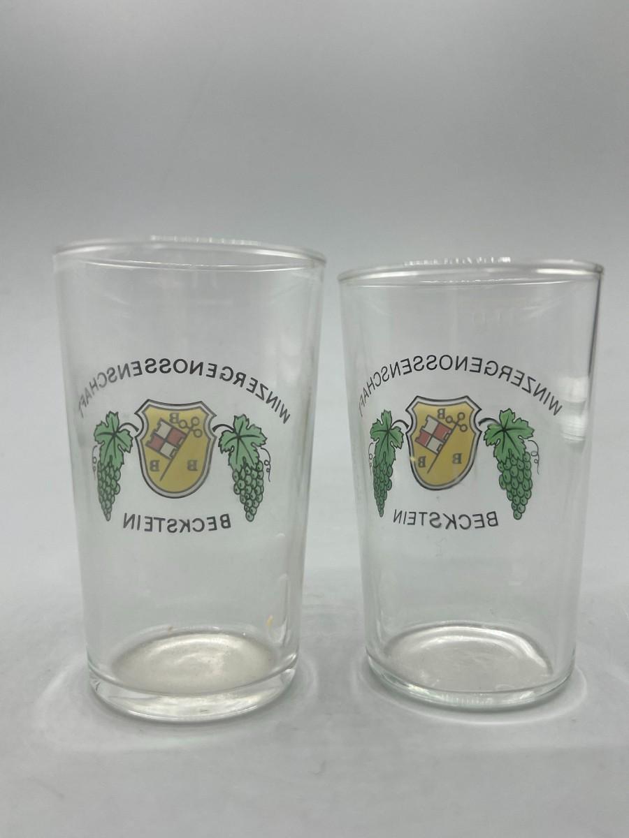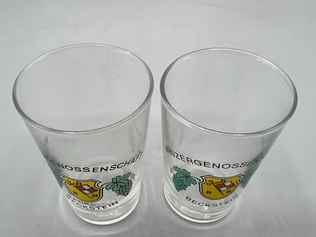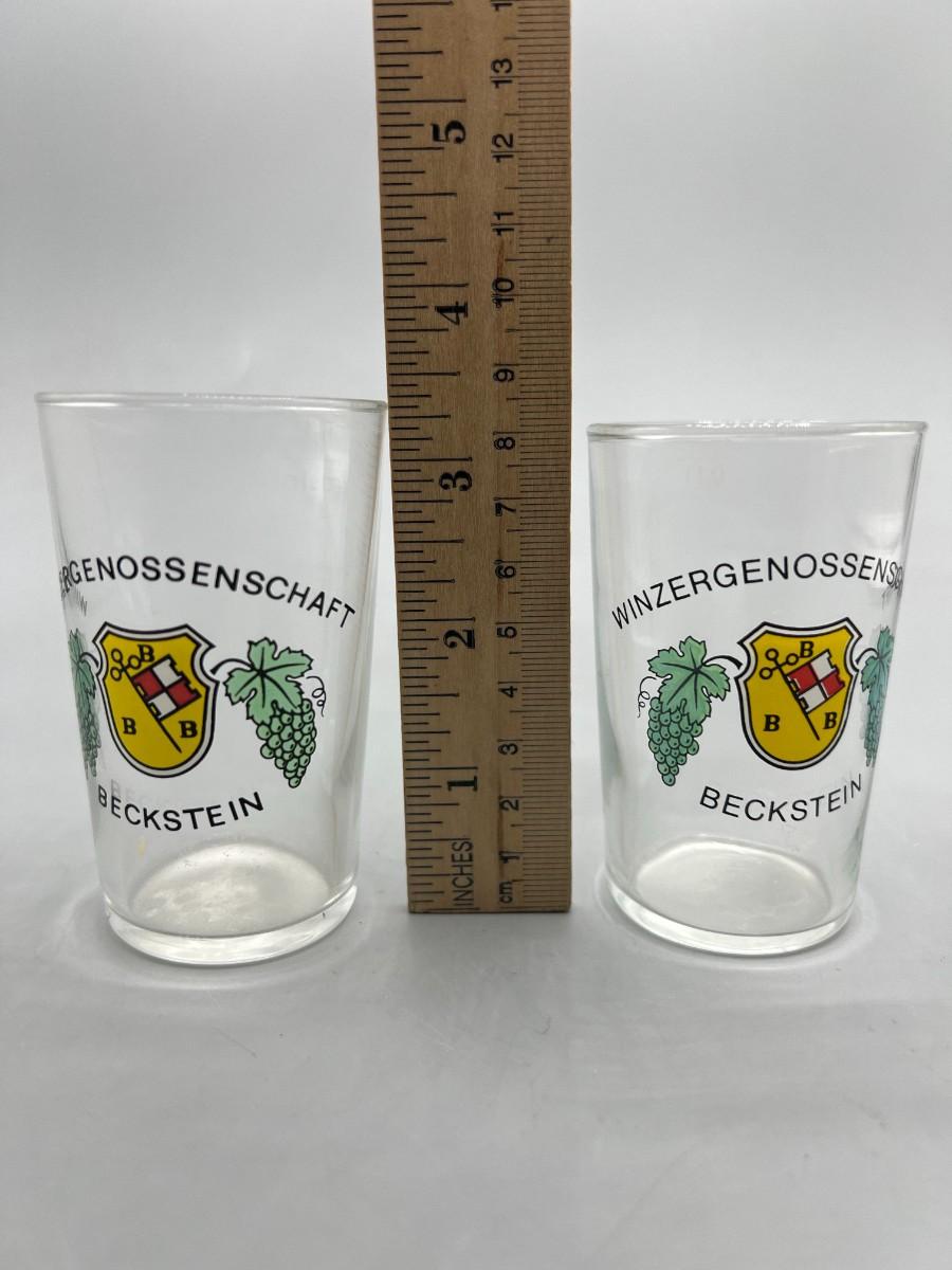 Pair of Vintage German Glass Vino Tasting Winzergenossenschaft Beckstein Yellow Crest Bareware