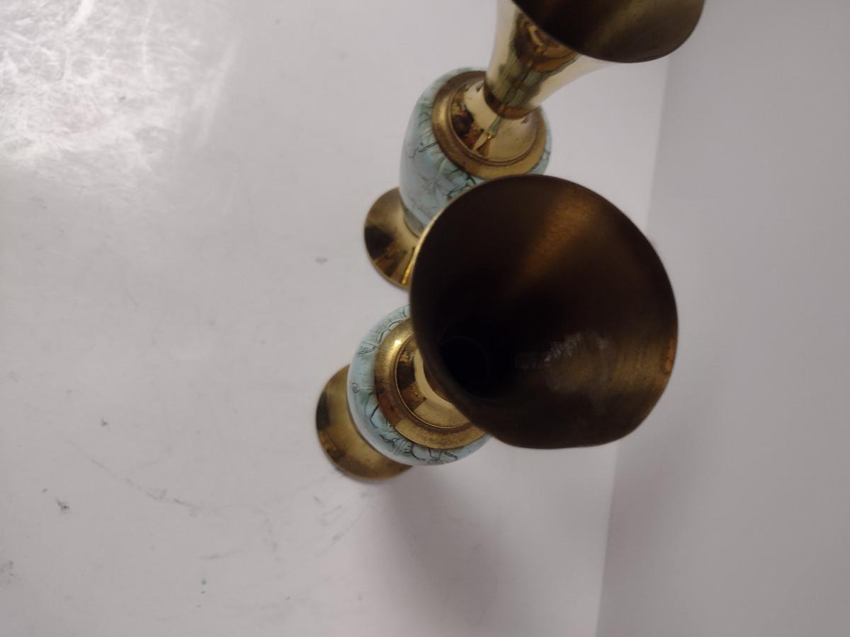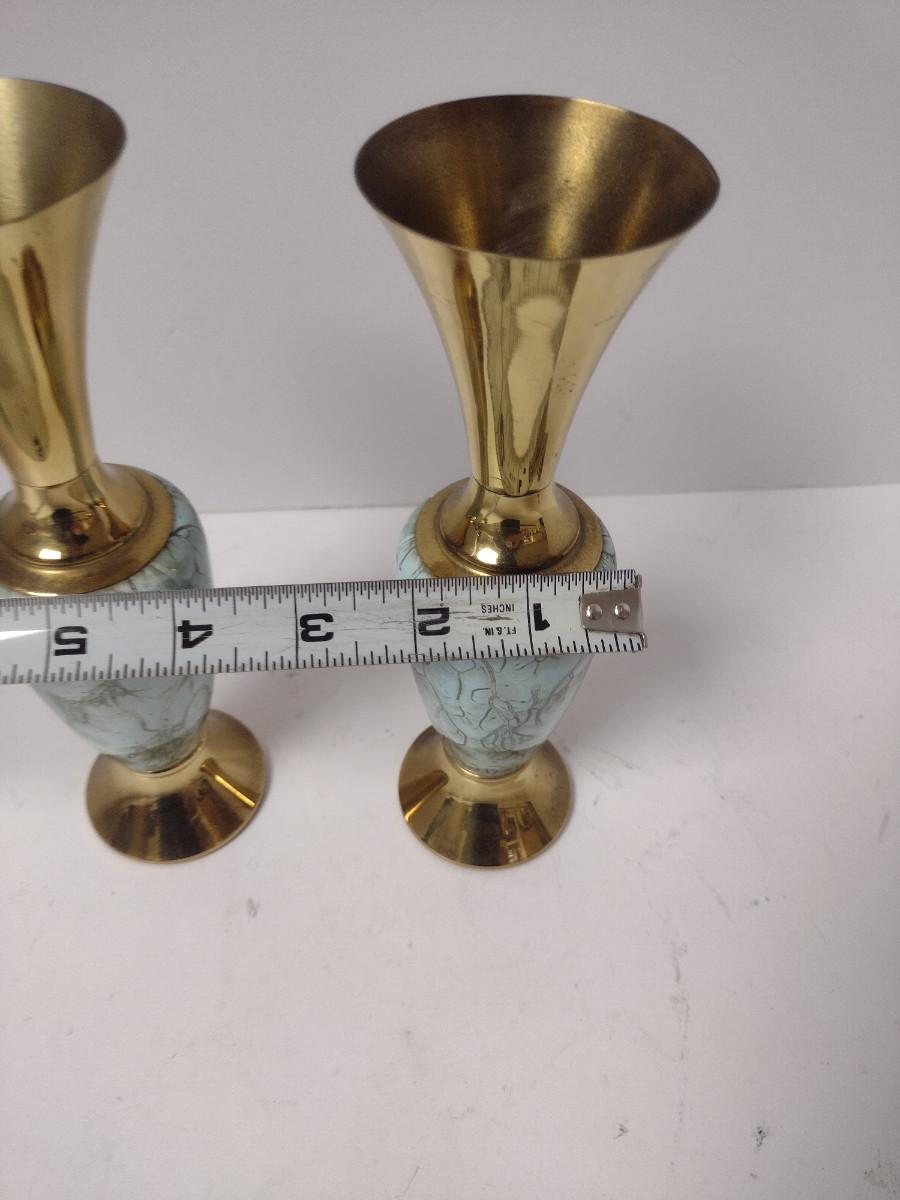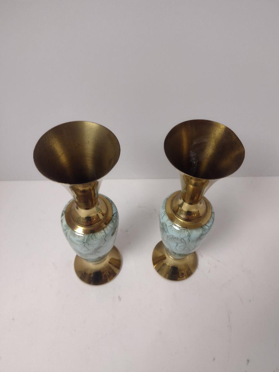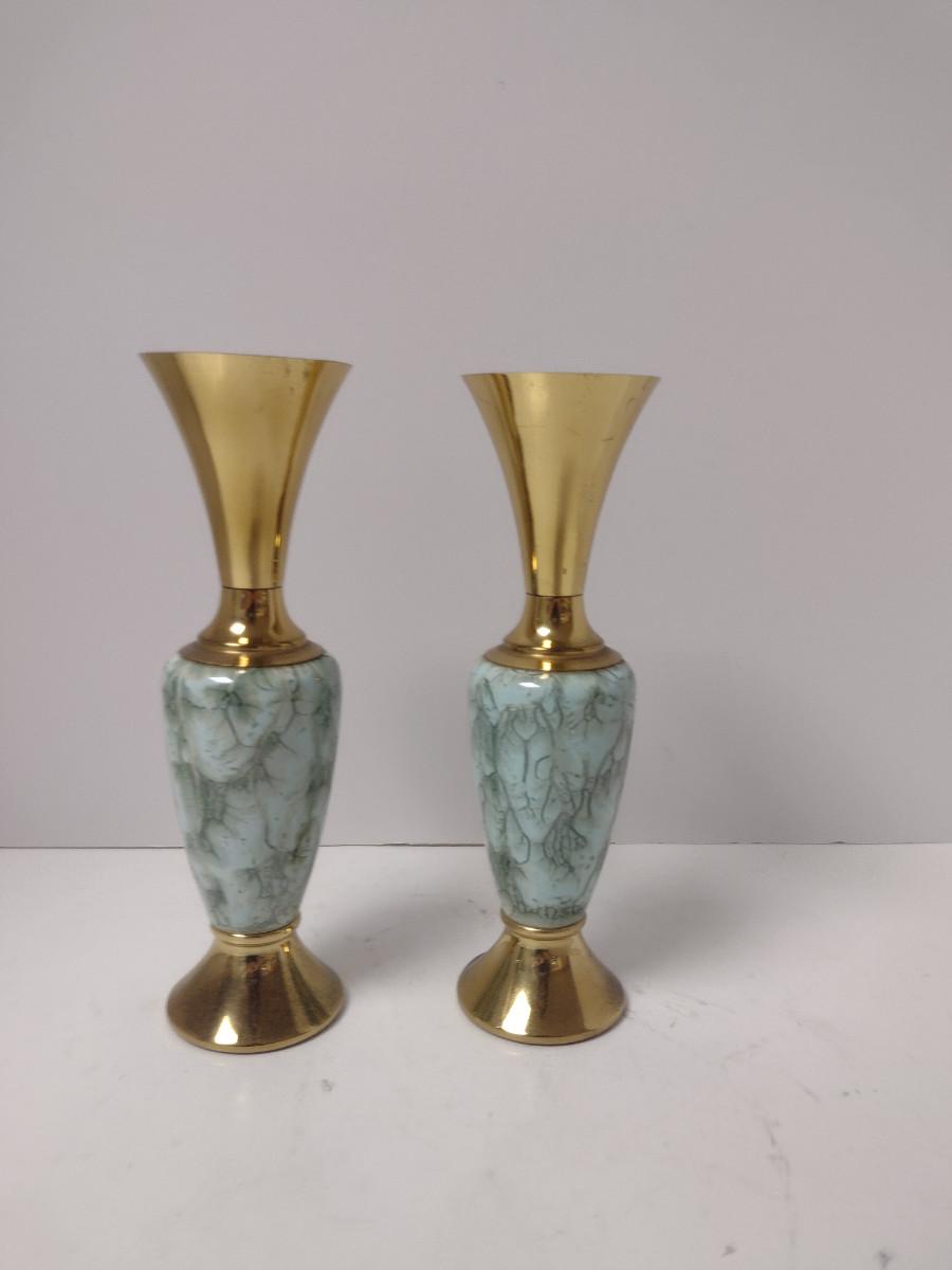 Pair of Vintage Glazed Ceramic and Metal Vases- Marked 'Holland'- Approx 8 1/2" Tall