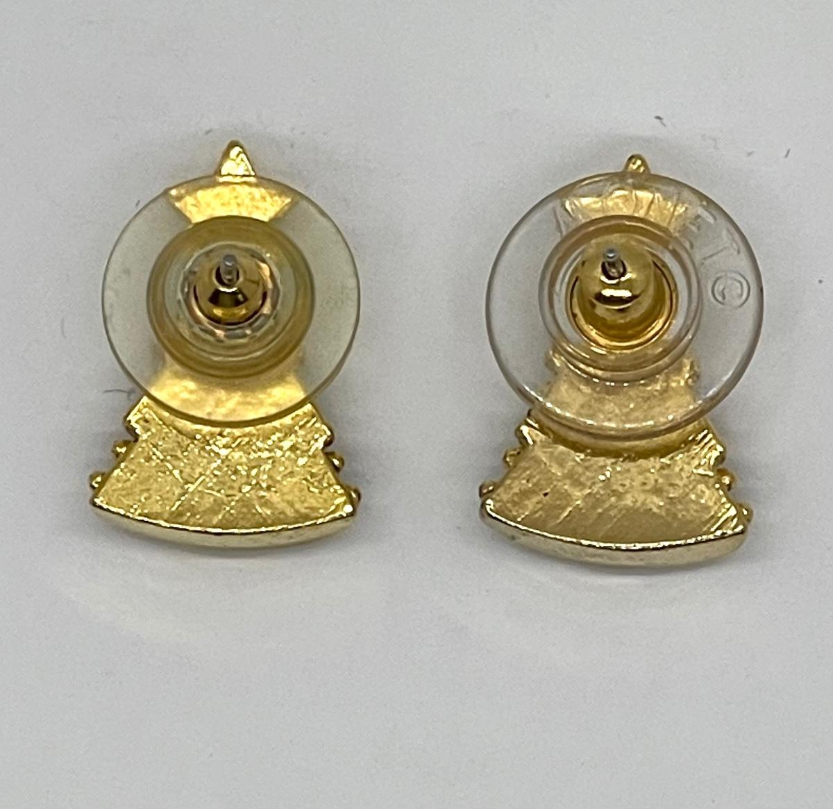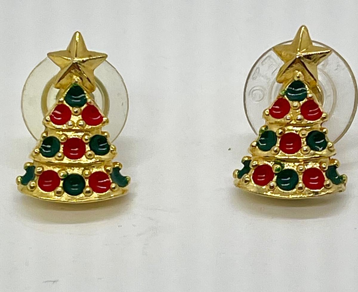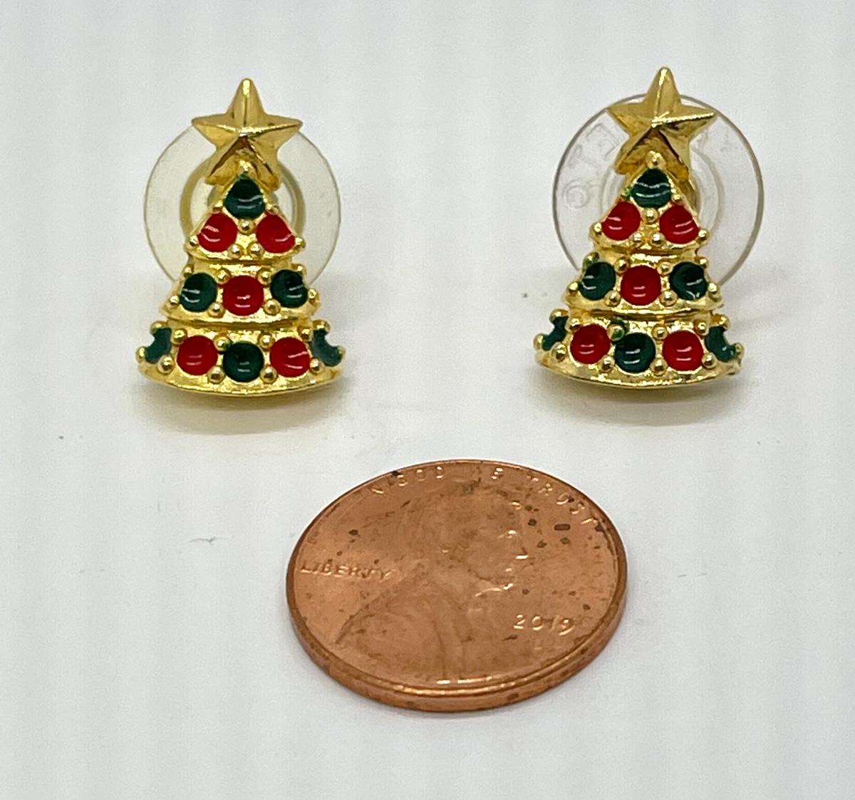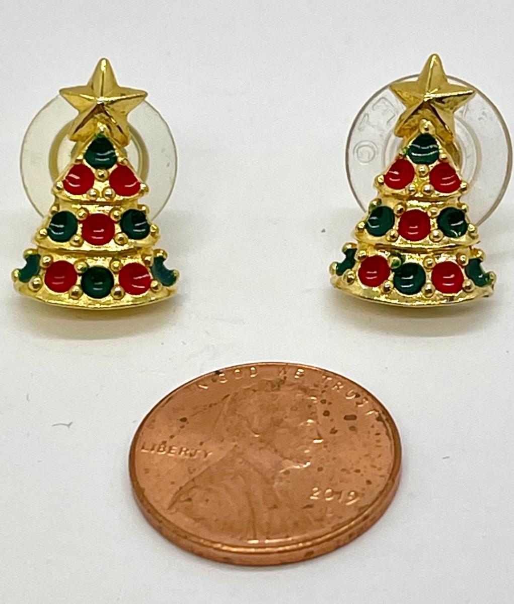 Pair of Vintage Gold Tone Enameled Christmas Tree Earrings. Good condition. Under 1" size.