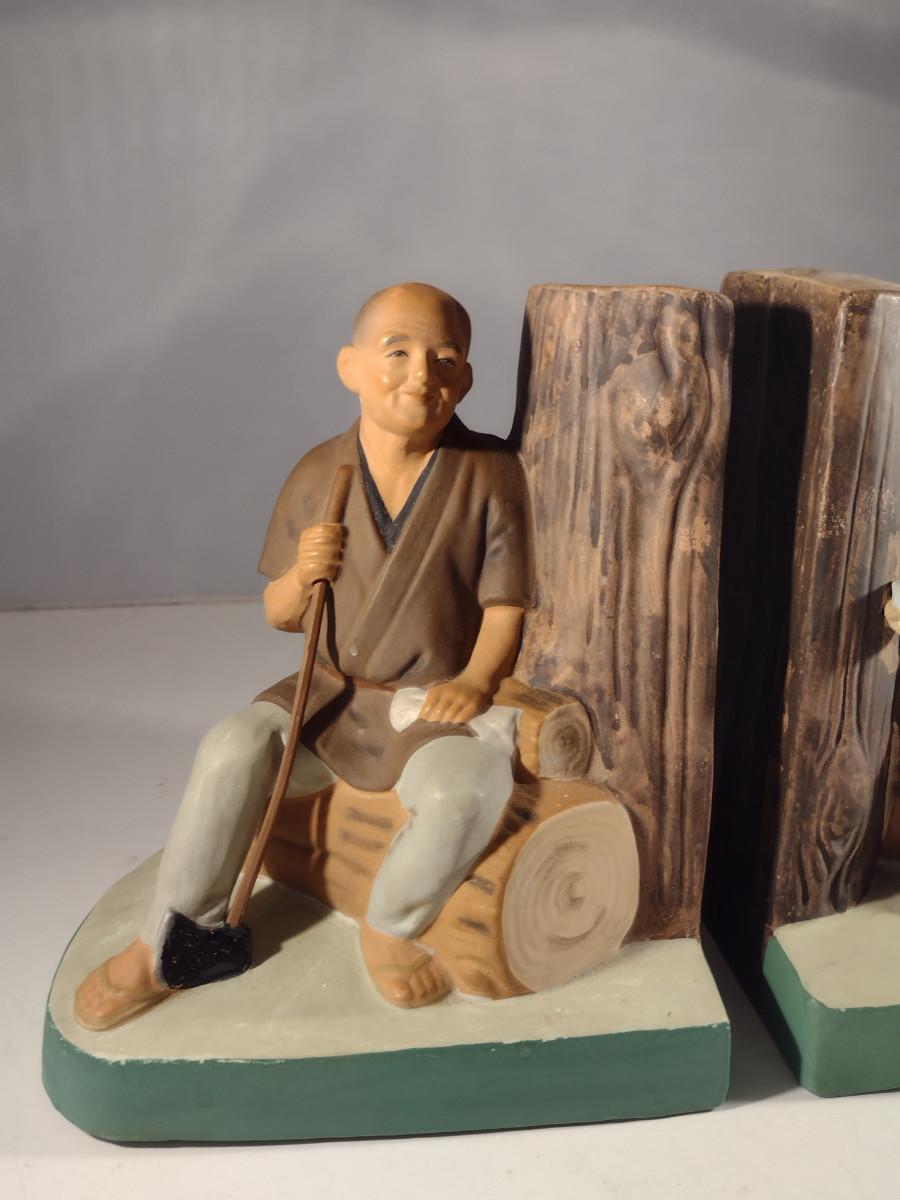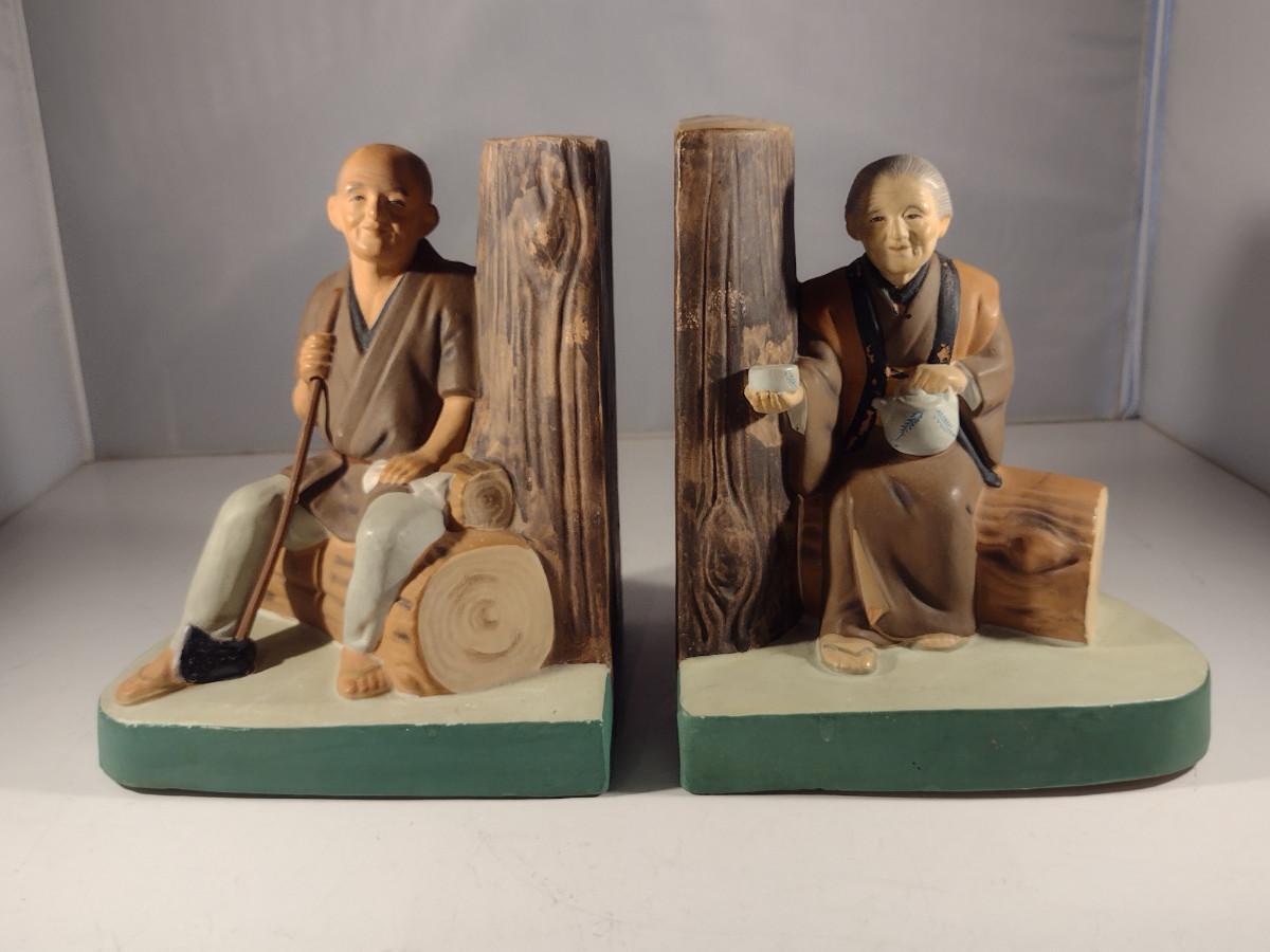 Pair of Vintage Hakata Urasaki Japanese Clay Figurine Bookends (#5). Please see all pictures for condition.