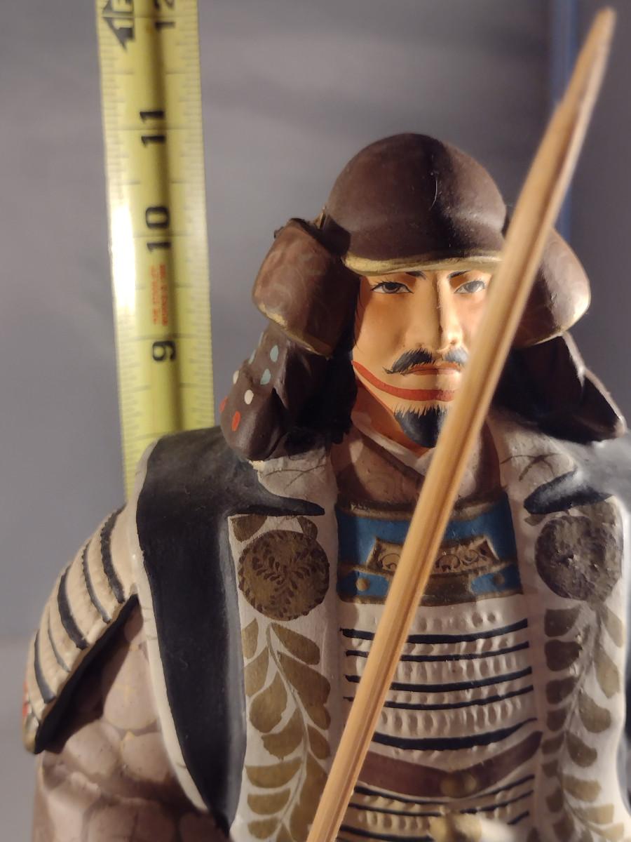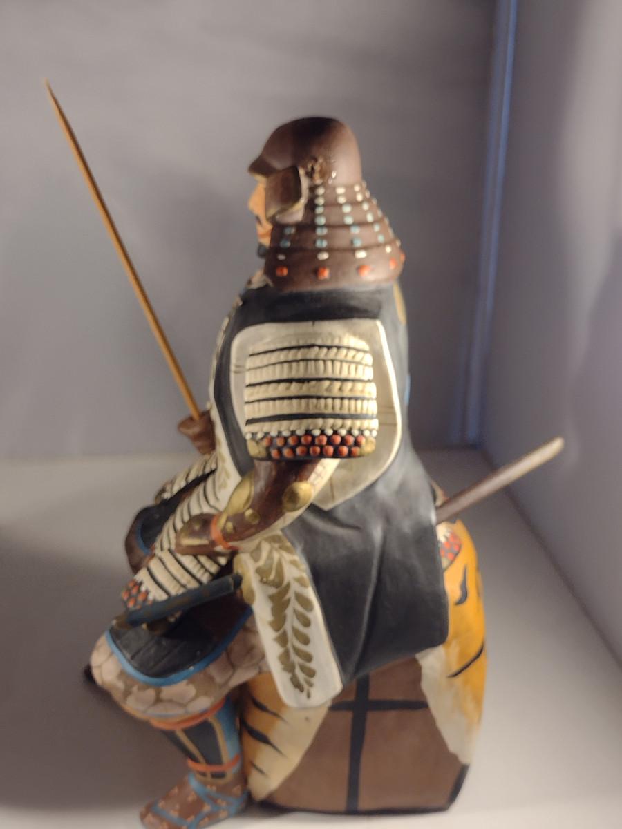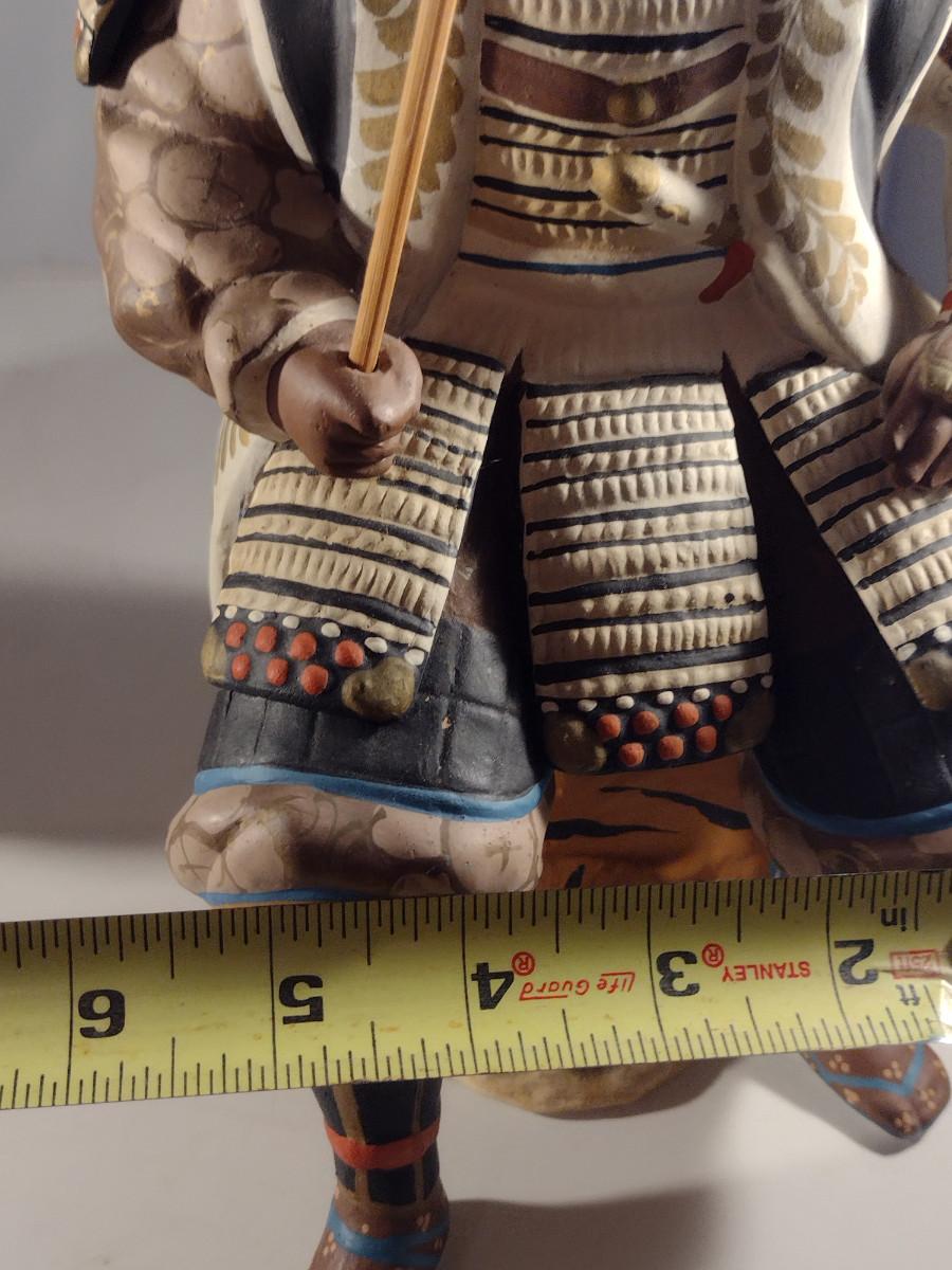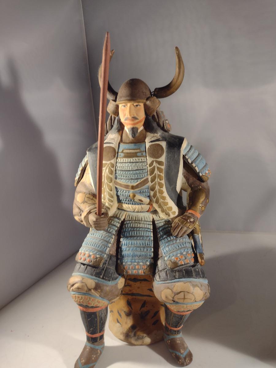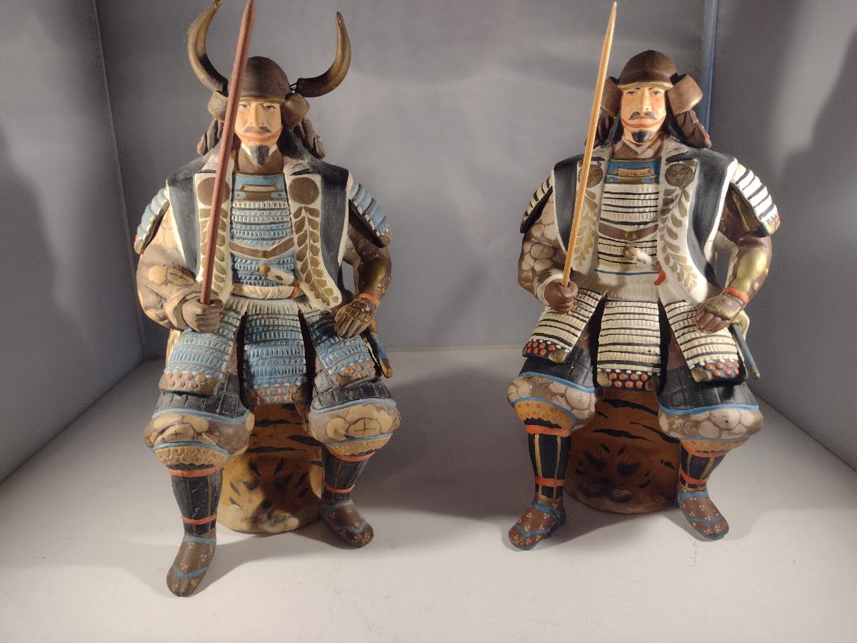 Pair of Vintage Hakata Urasaki Japanese Clay Figurines- Samurai Warriors in Full Armor (#1). Items have missing pieces- please see all pictures for condition.