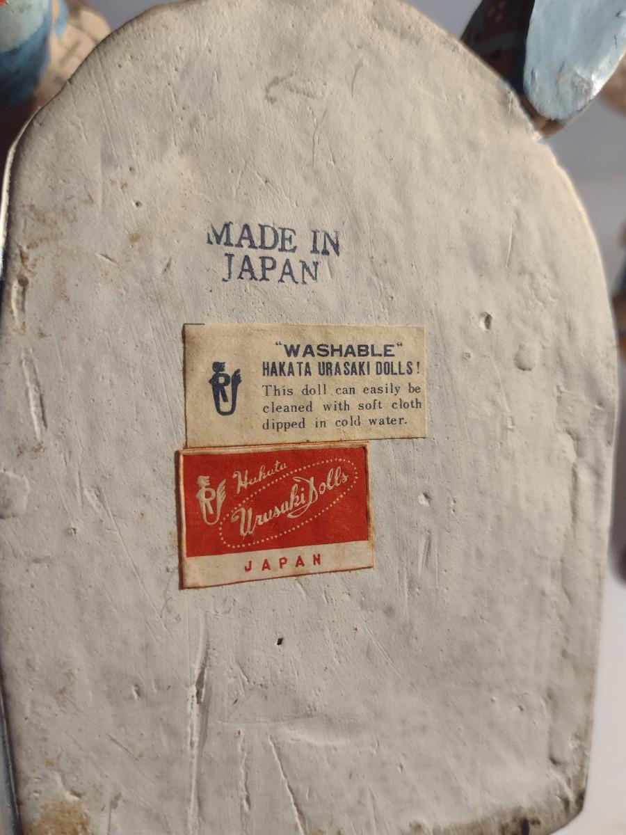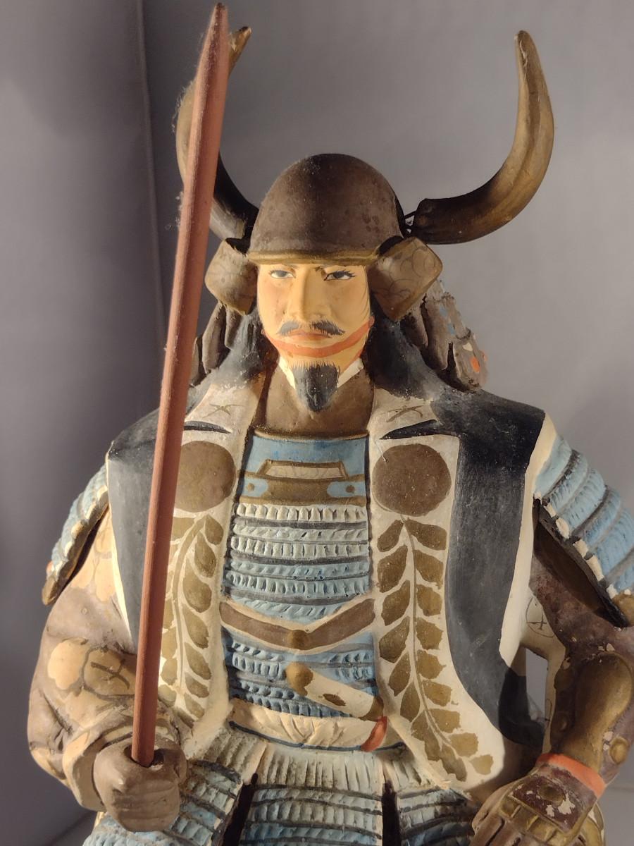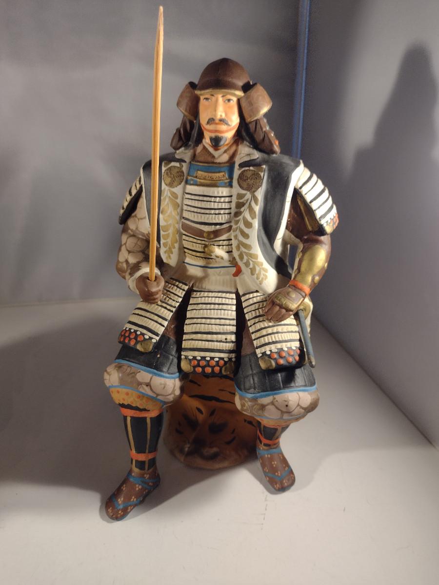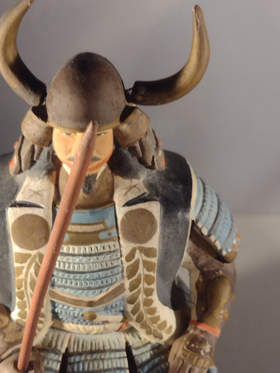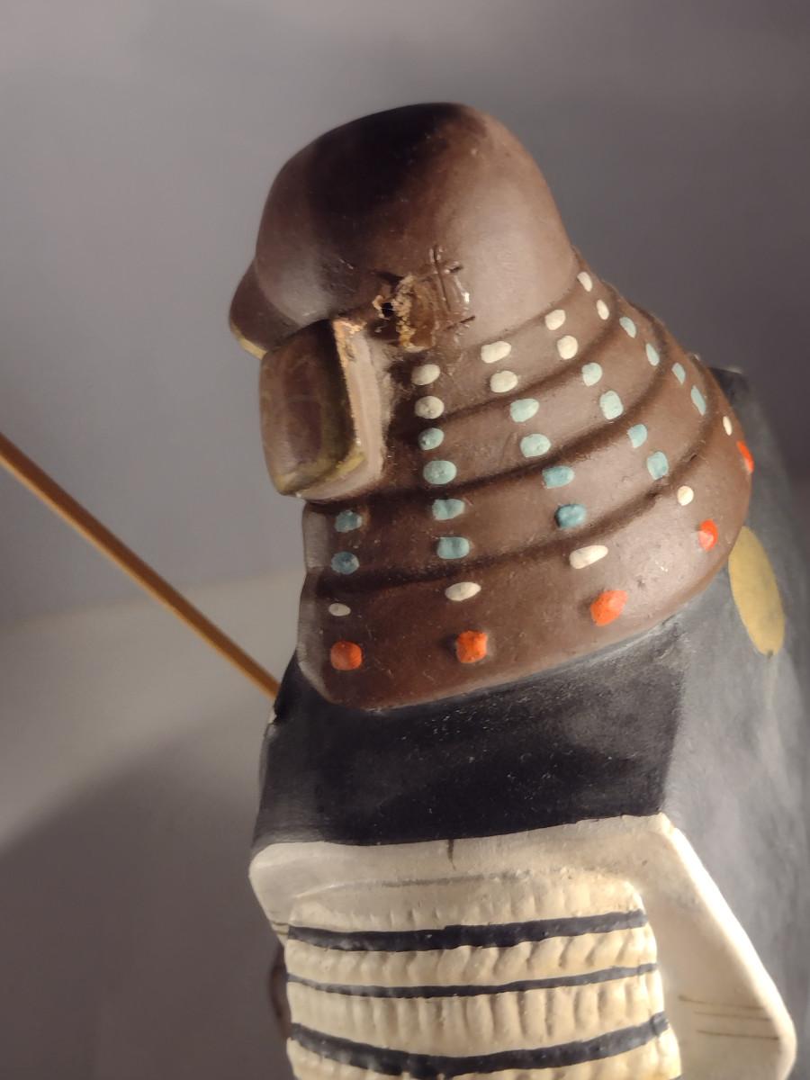 Pair of Vintage Hakata Urasaki Japanese Clay Figurines- Samurai Warriors in Full Armor (#1). Items have missing pieces- please see all pictures for condition.