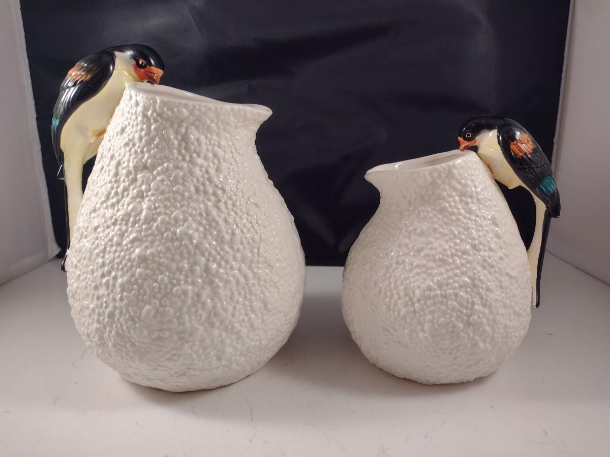 Pair of Vintage Haldon Group Pottery Figural Bird Handled Water Pitchers