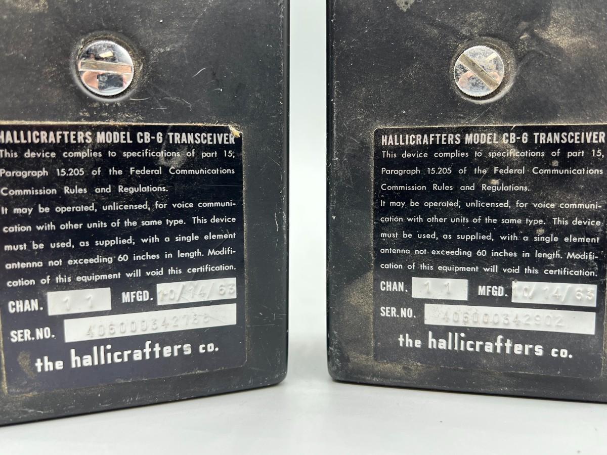 Pair of vintage Hallicrafters Model CB-6 Tranceivers. In fair condition. Untested.