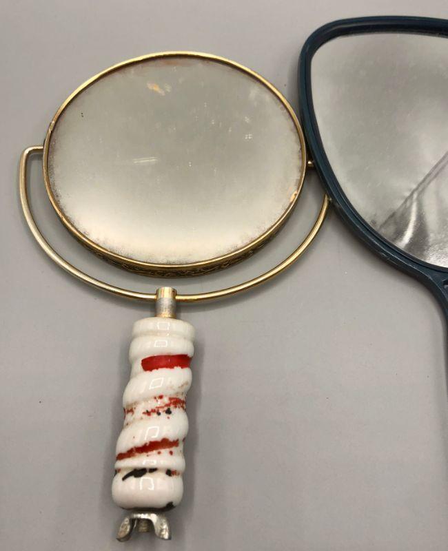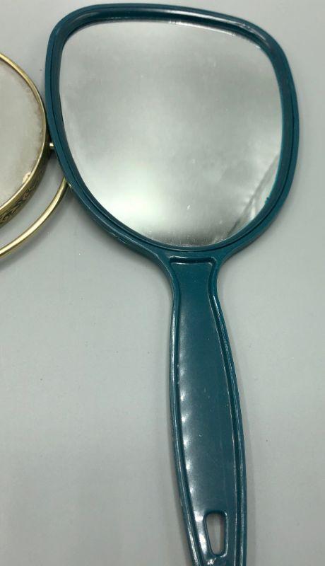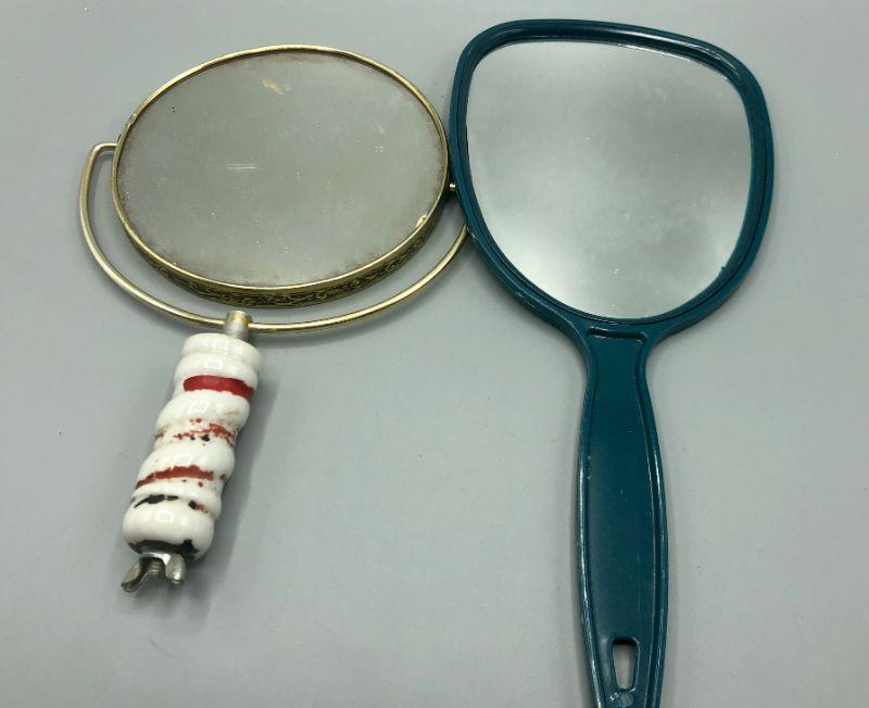 Pair of vintage hand mirrors. Previously owned. Paint on the handle of one has worn off.