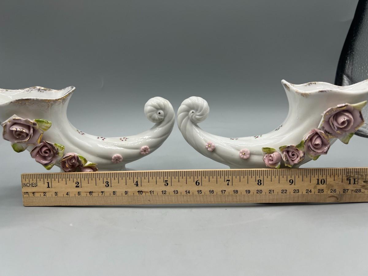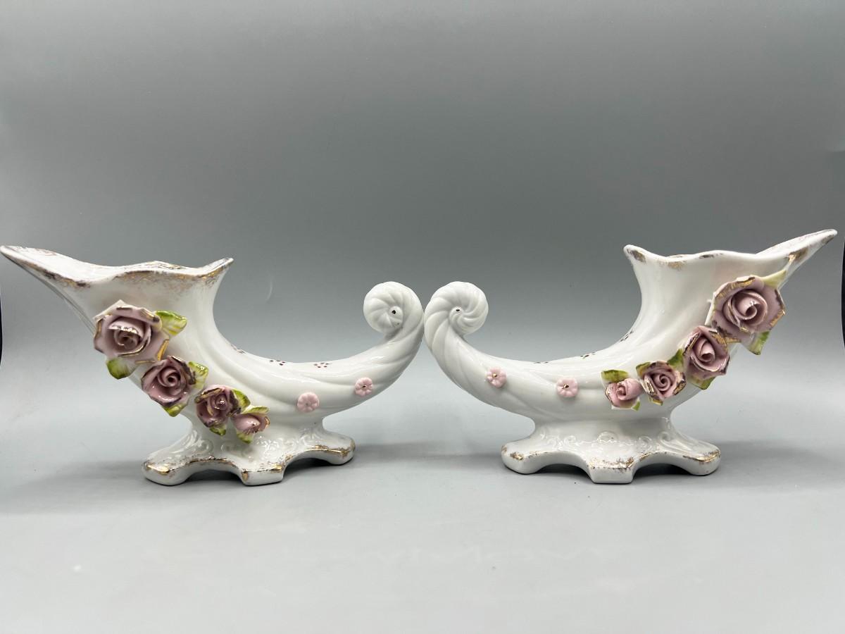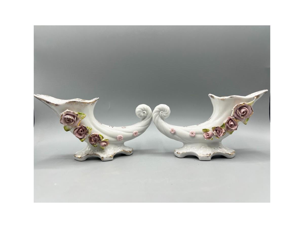 Pair of Vintage Hand Painted Royal Japan Porcelain Cornucopia Vases