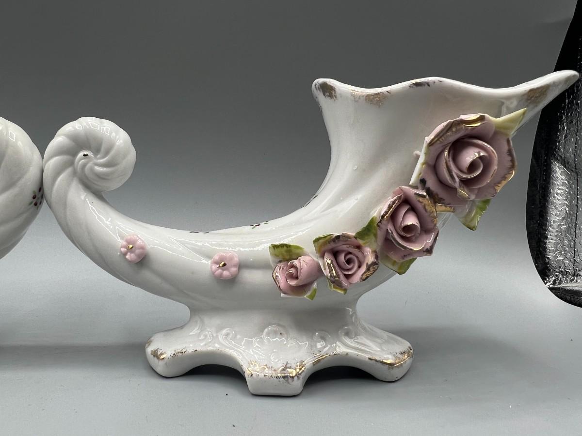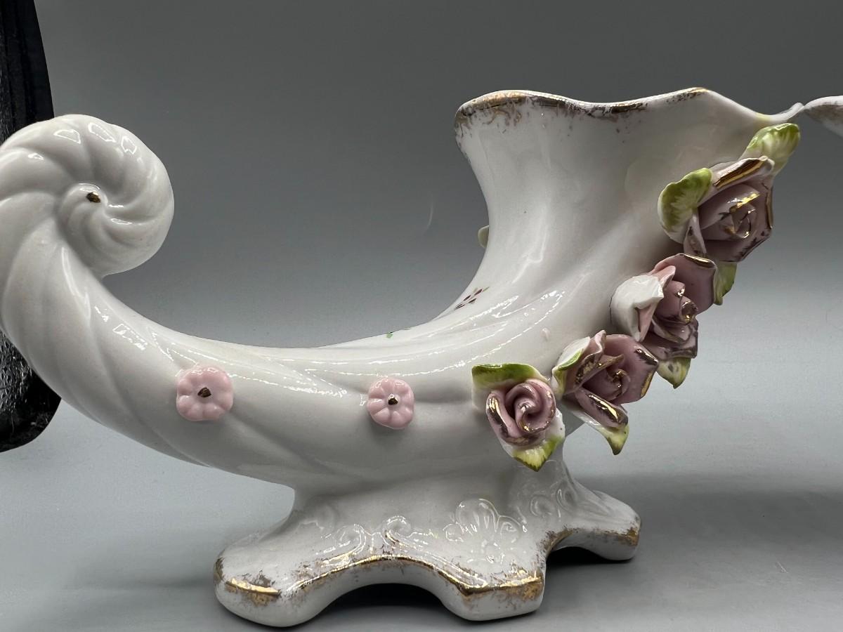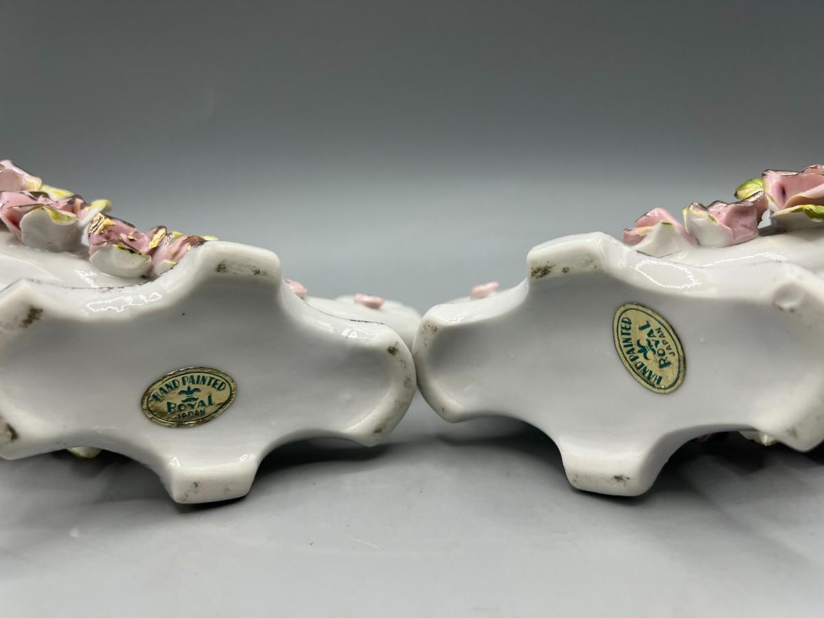 Pair of Vintage Hand Painted Royal Japan Porcelain Cornucopia Vases